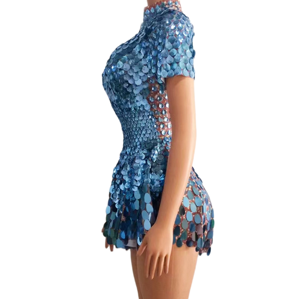 Prepárate para brillar como una bola de espejos con este vestido deslumbrante de lentejuelas XXL. Su diseño ceñido realza tus curvas y su falda con volumen lo convierte en el look perfecto para bailar sin parar. Ideal para festivales, escenarios o noches donde ser el centro de todas las miradas es obligatorio.