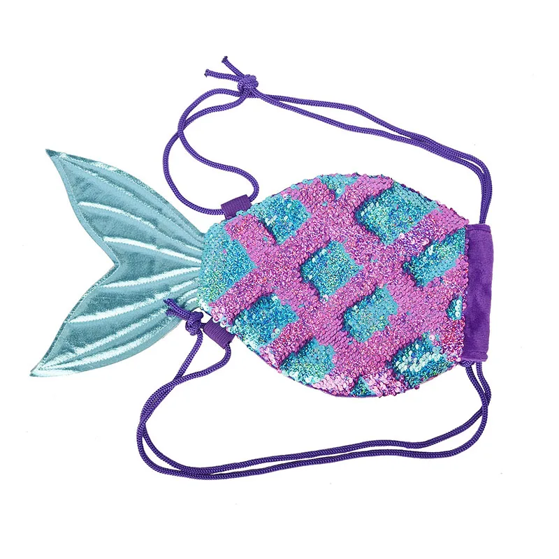 🧜Una mochila con forma de cola de sirena, cubierta de lentejuelas que cambian de color con la luz. Perfecta para las que aún creen en la magia marina, las que bailan descalzas y se saben únicas.