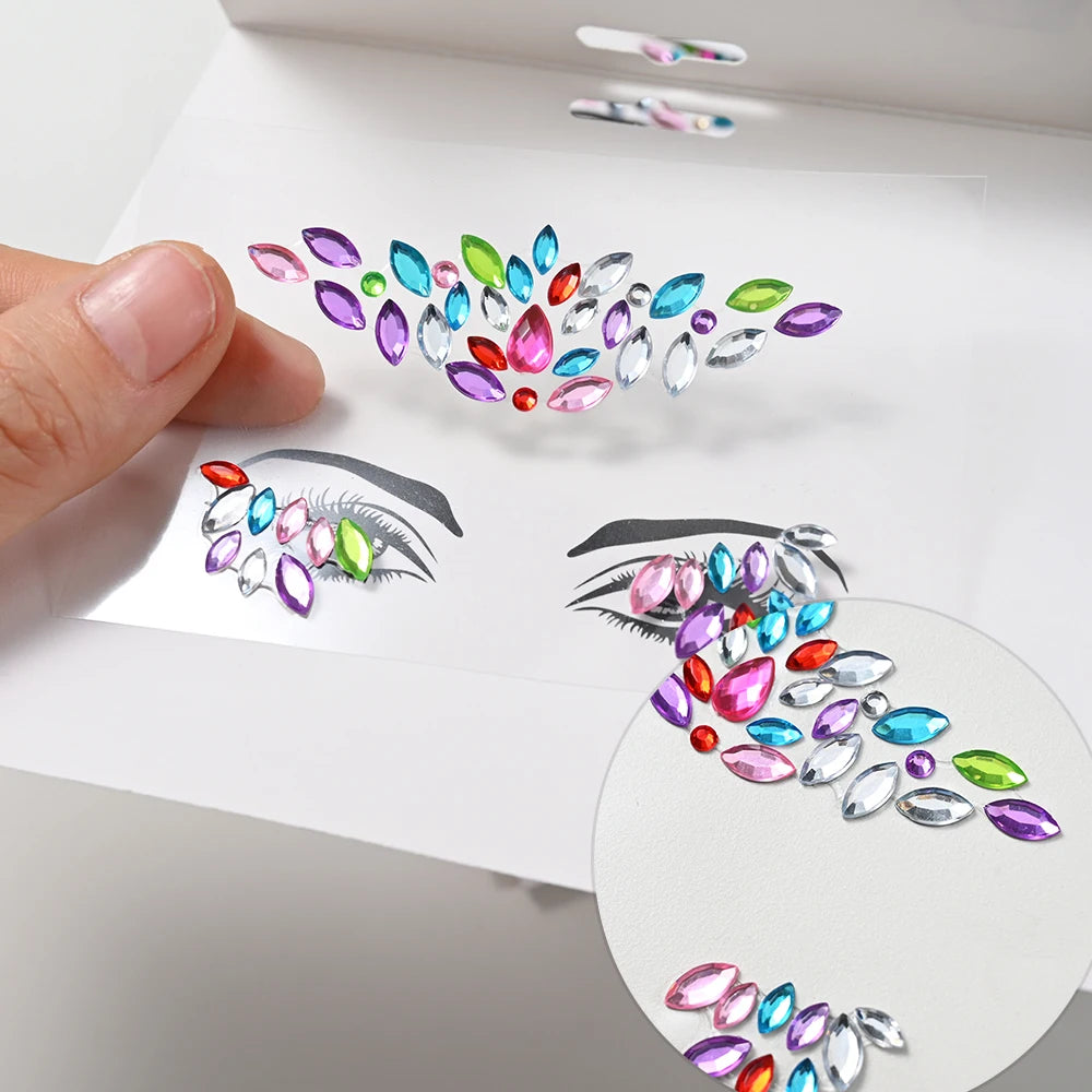 💎Galaxy Goddess – Joyas Adhesivas 3D Multicolor para Rostro 💠✨47 variantes a elegir