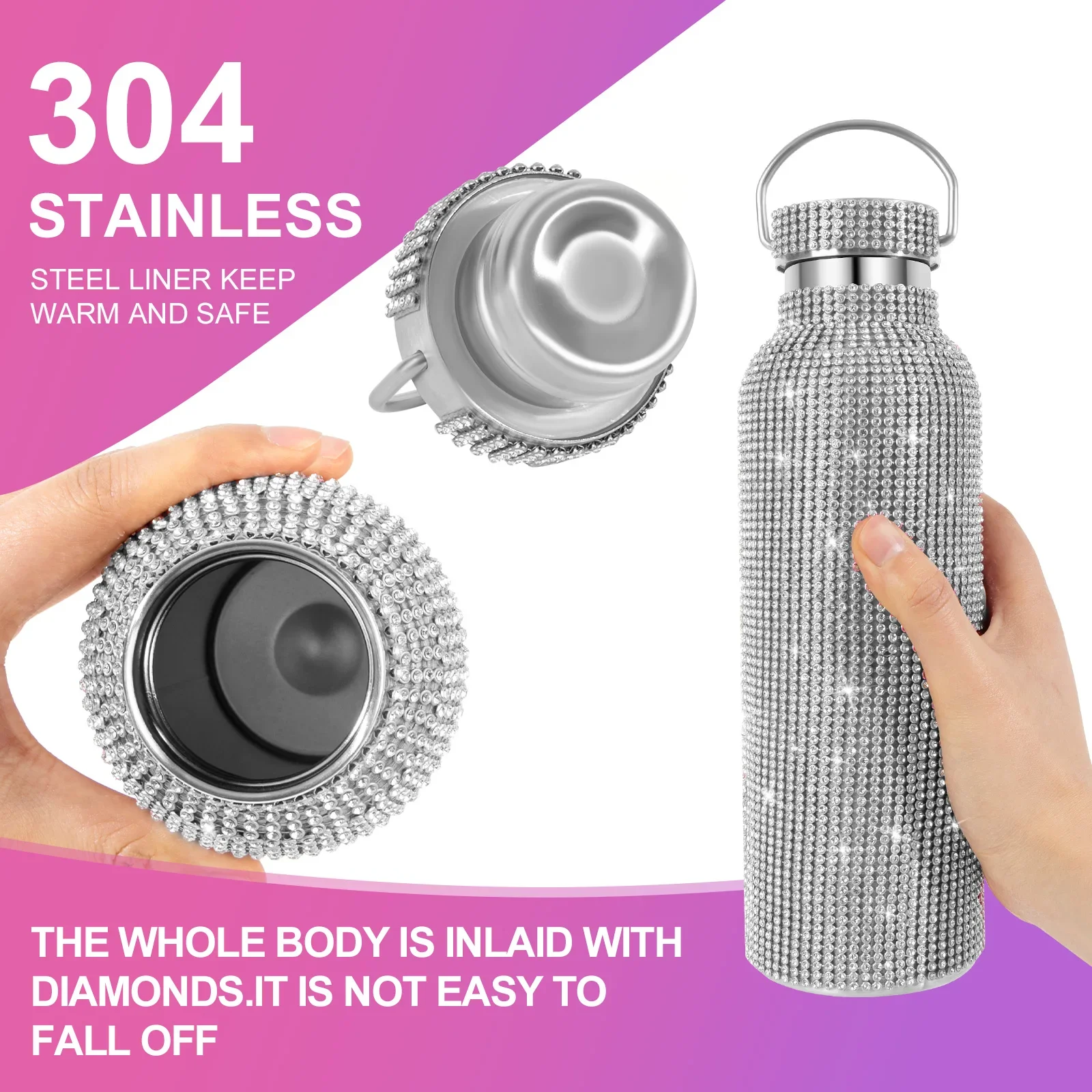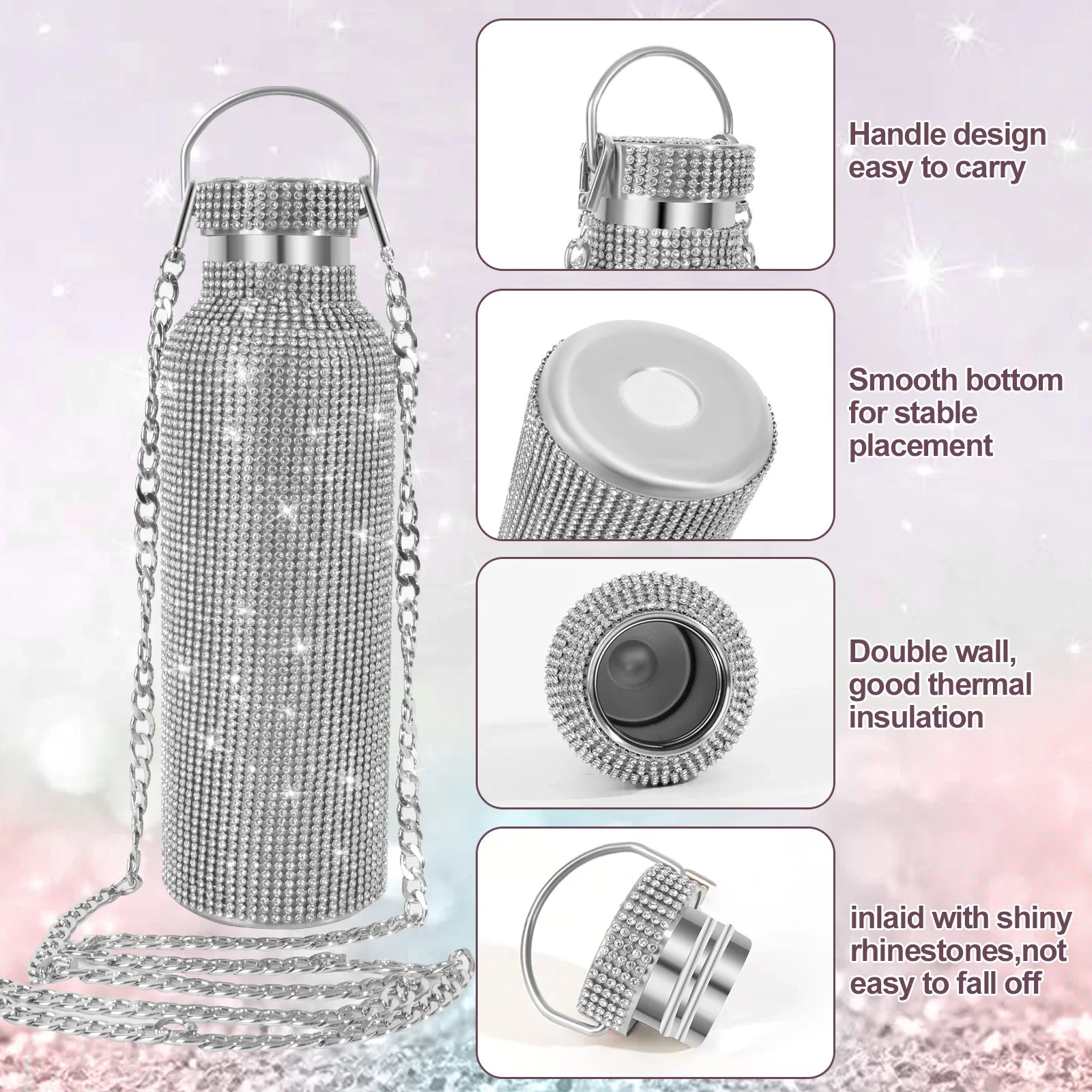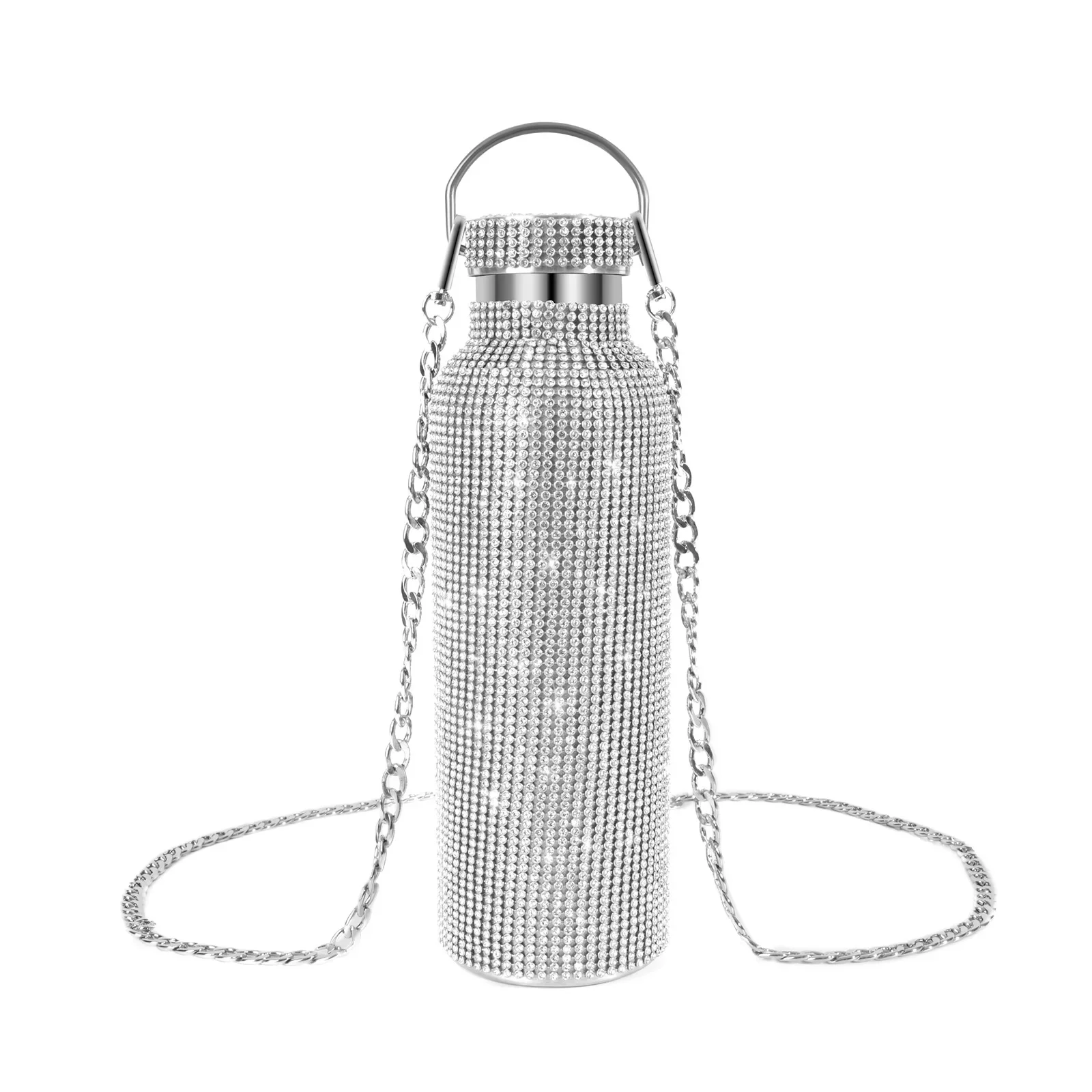 💎Llévala como un accesorio más. 💦 Esta botella térmica con cadena y diamantes es el complemento que tu outfit festivalero necesitaba. Mantiene tus bebidas listas para que tú solo te ocupes de brillar.