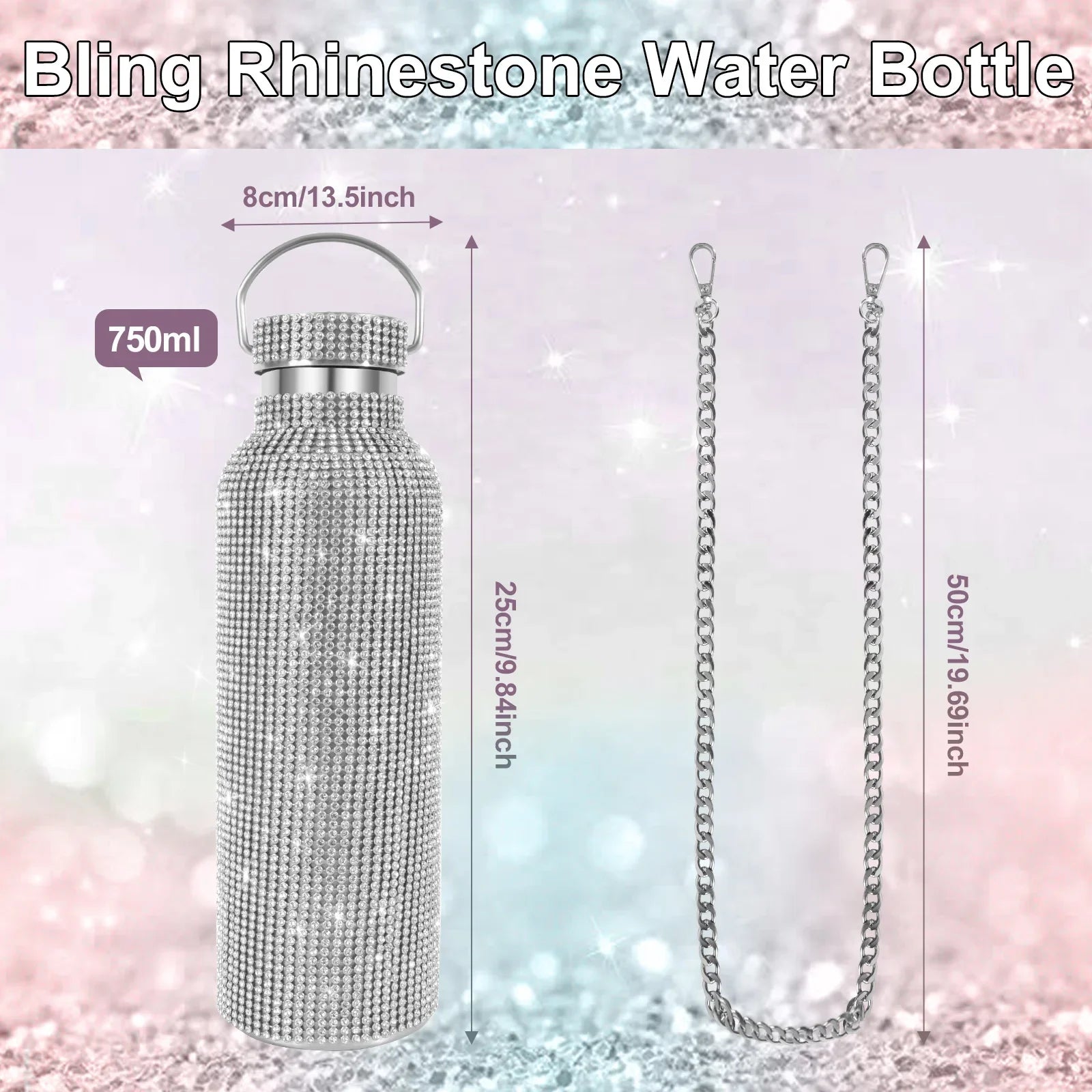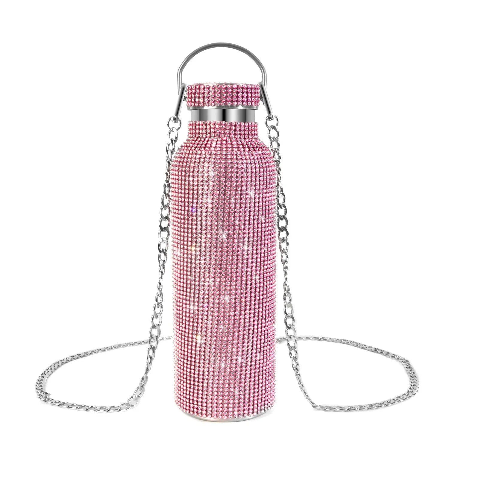 💎Botella Glam On The Go — Con Cadena 🔥 4 colores, 2 tamaños🌟