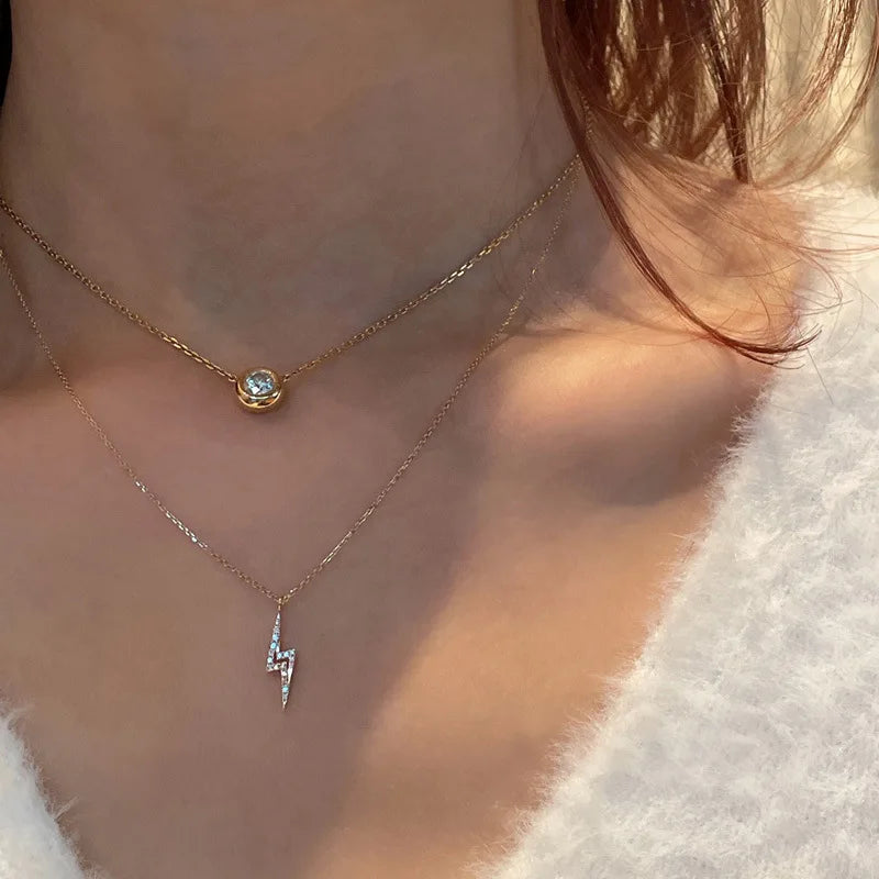 Este collar con colgante de rayo y zirconia brillante canaliza fuerza, decisión y luz veloz, para las que no tienen miedo de incendiar lo que no vibra.