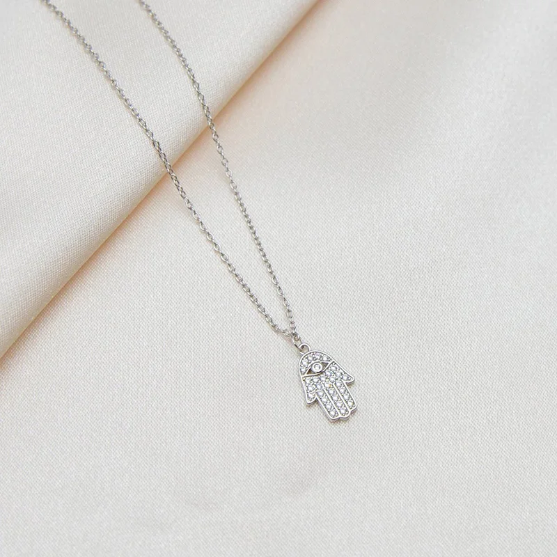 👁️🔥“Sacred Bling” – Collar Mano de Fátima en Plata 925 con Zirconias ✨ Protección Punk Ice-Out Unisex