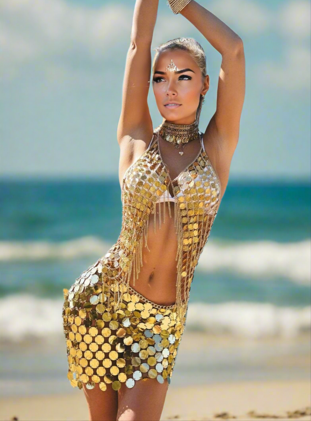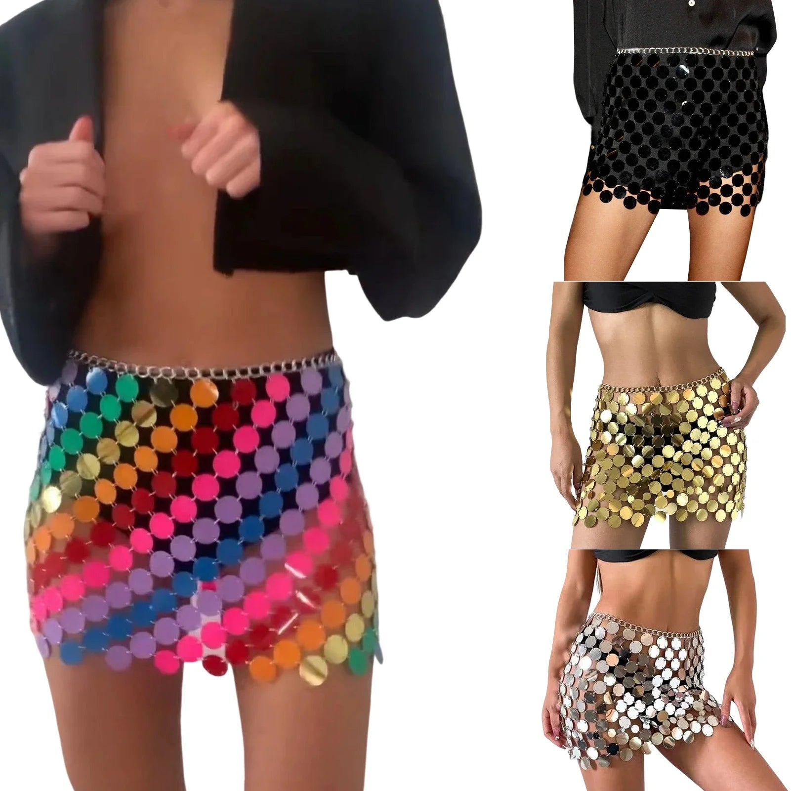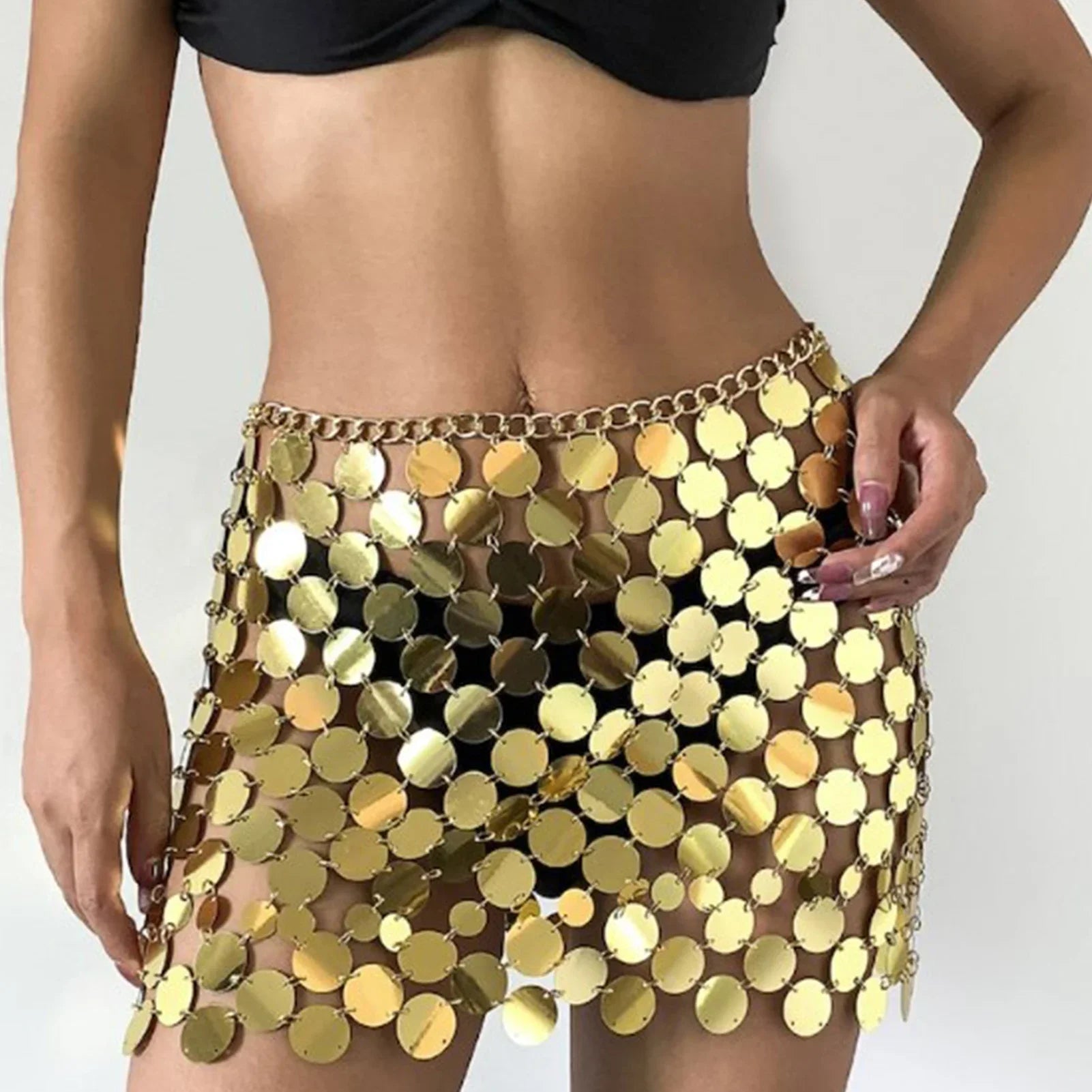 Prepárate para arrasar en la pista ✨. Nuestra Metal Mirror Miniskirt está hecha para brillar: una falda corta con lentejuelas de poliéster cosidas en cadena, que refleja cada luz como un verdadero disco ball 💃. Sexy, vibrante y única,