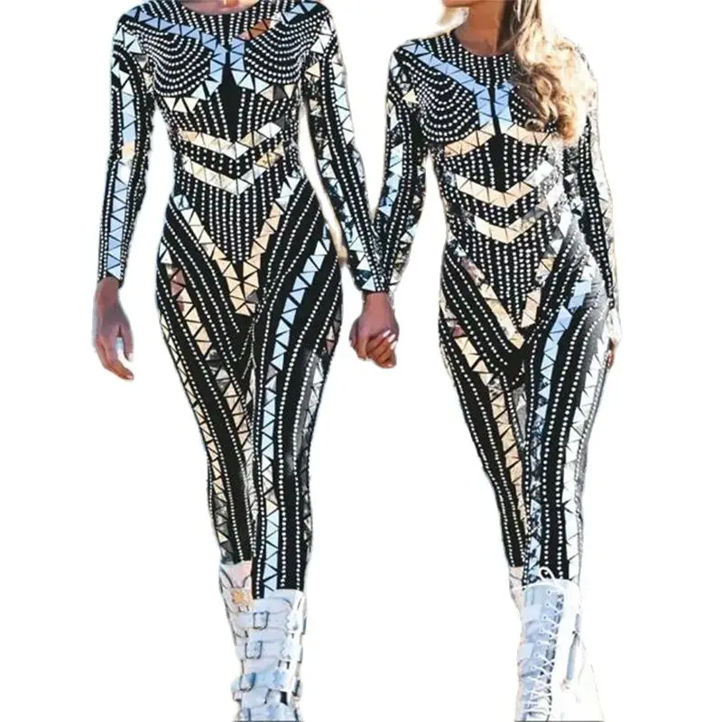 ✨Déjate envolver por el brillo de este mono de lujo con pedrería, creado para almas que no temen destacar. Con su tejido elástico y cómodo, es perfecto para brillar en festivales como Burning Man, Halloween, fiestas temáticas y escenarios donde la magia ocurre. Sus mangas y piernas largas estilizan la silueta, mientras la cremallera trasera aporta un toque práctico sin romper su diseño deslumbrante. Cada paso que des, cada giro, reflejará destellos únicos gracias a su pedrería de alto impacto. 💫🔥