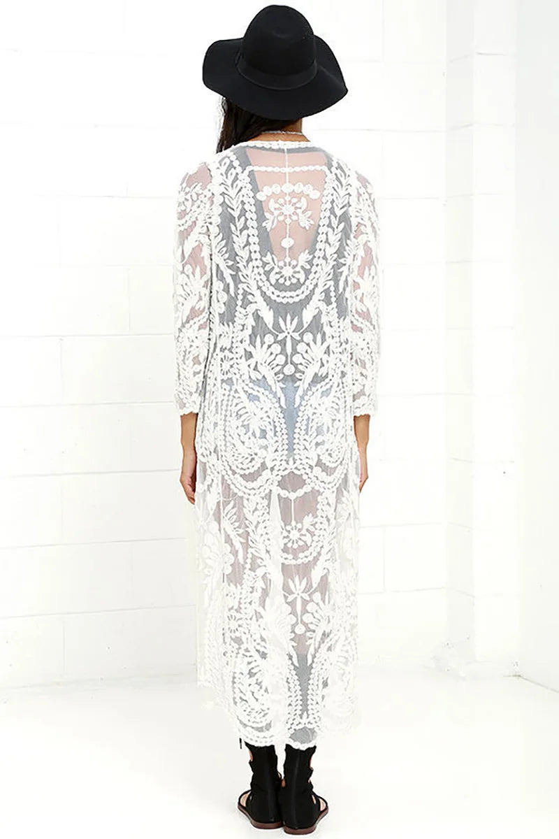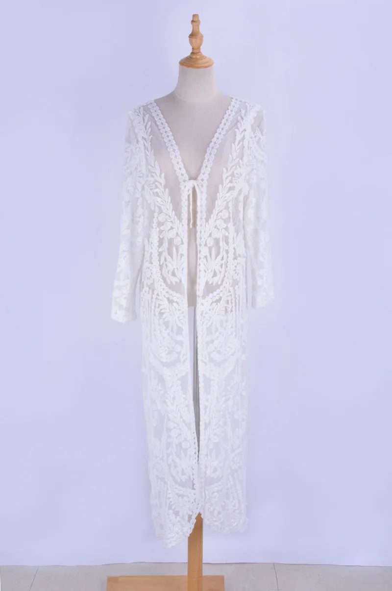 ✨🌊Déjate envolver por la magia del verano con este kimono largo de encaje bordado. Transparente, fluido y con un aire bohemio irresistible, es el compañero perfecto para tus días de playa, festivales o paseos al atardecer. Su diseño delicado realza tu figura y añade un toque de sensualidad y elegancia natural. Ideal para llevar sobre el bikini, shorts o un look festivalero. ¡Pura vibra libre y soñadora! 🌞💫