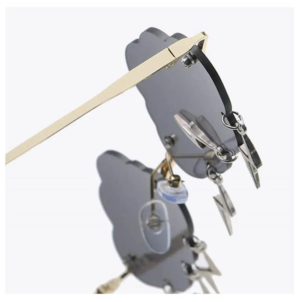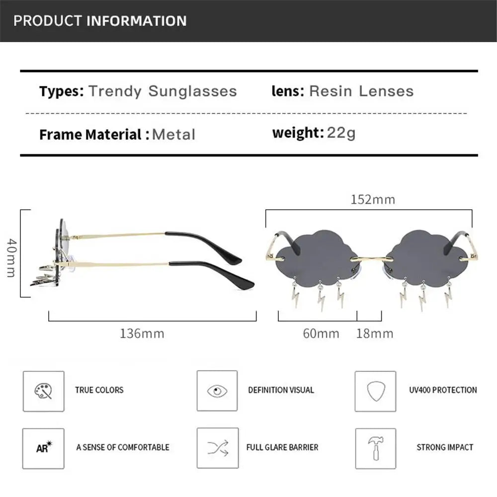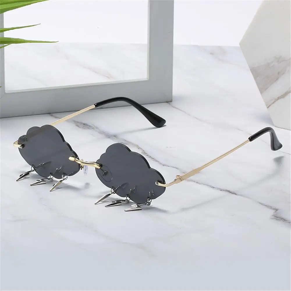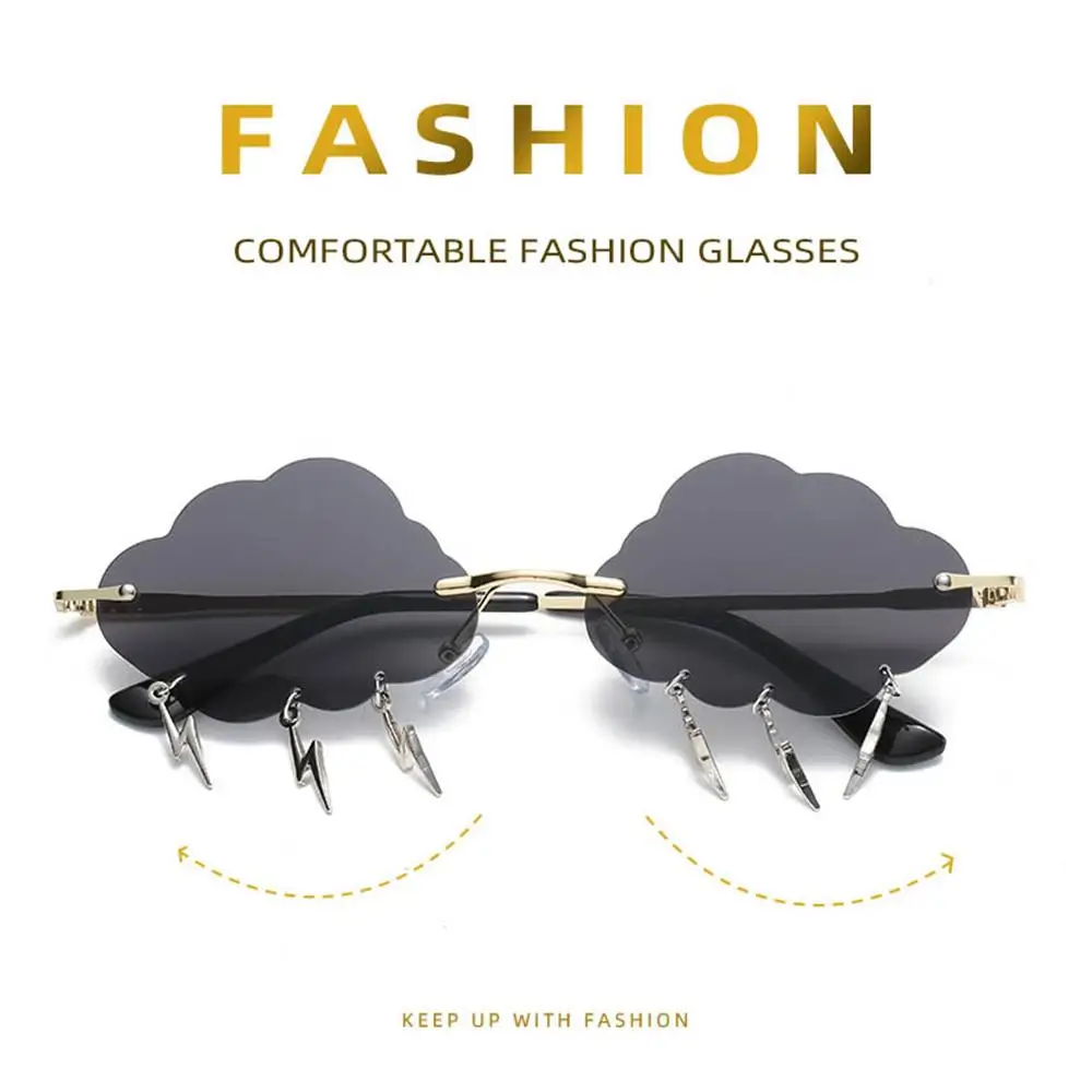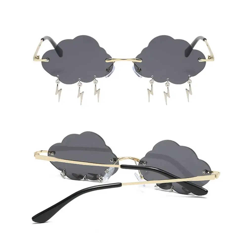 😎Luce como una tormenta de estilo con estas gafas con forma de estrella o de nube, detalles metálicos y rayos colgantes. Un diseño sin montura que combina el rollo steampunk con el cielo psicodélico. Ligeras, sin montura y con forma de estrella. Perfectas para festivales, fiestas temáticas o cuando simplemente quieres llamar la atención.