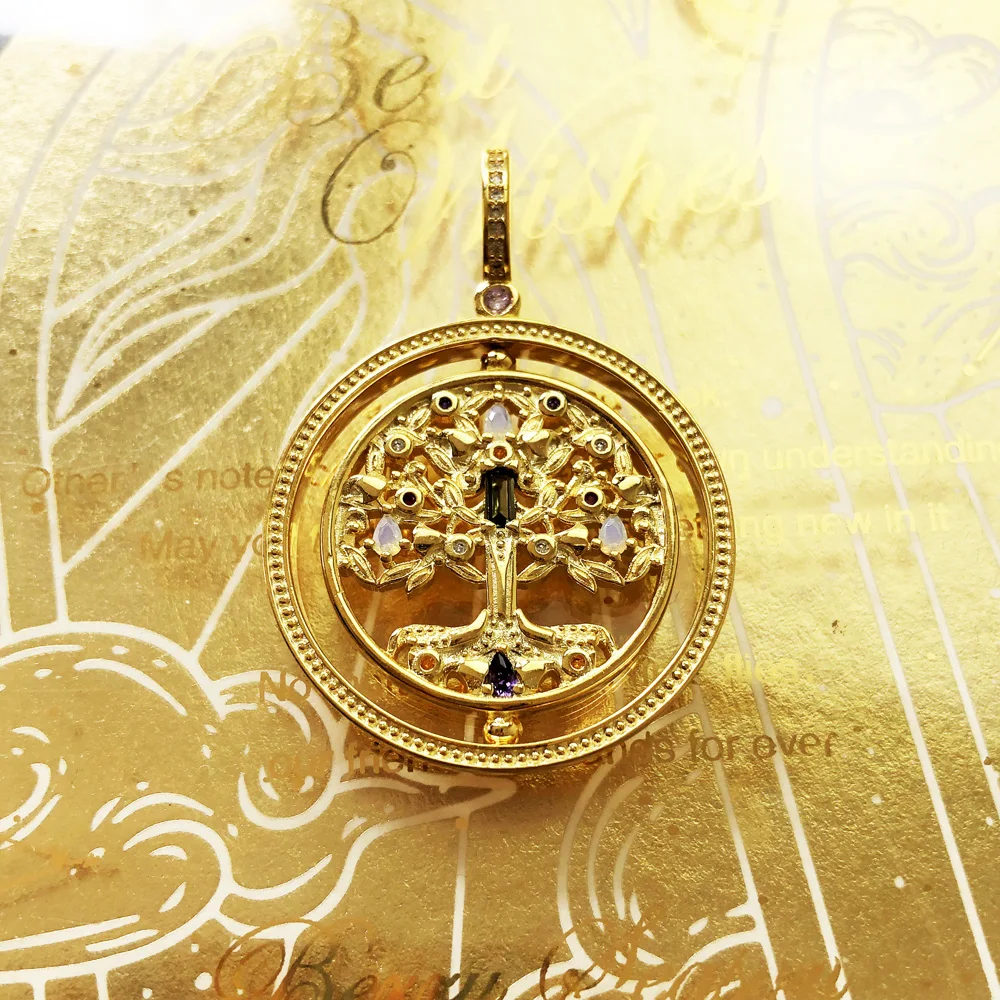 🌳Amuleto dorado que simboliza la fuerza, el amor y la naturaleza 🌸. Un toque espiritual y sofisticado, elaborado en plata 925 con detalles coloridos.