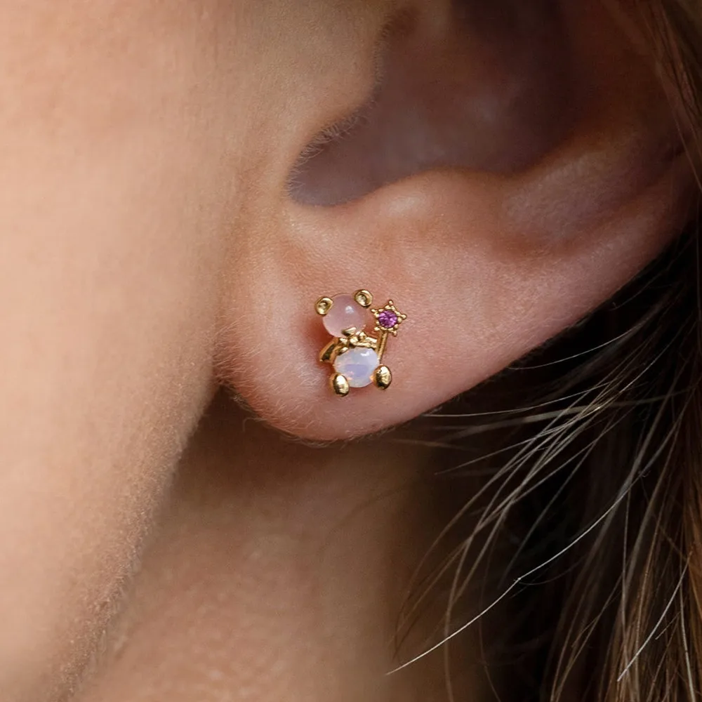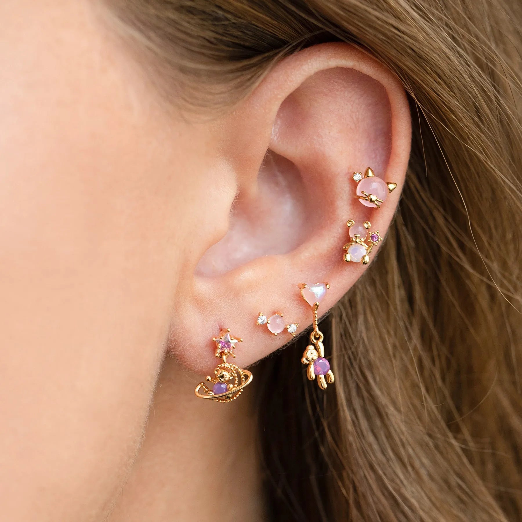 🧸Mini ositos que brillan con ternura rebelde. Chapados en oro 18k y con circonitas en tonos rosados para darle dulzura mágica a tu oreja. El toque kawaii chic para tus looks de festival, rave o girl gang.