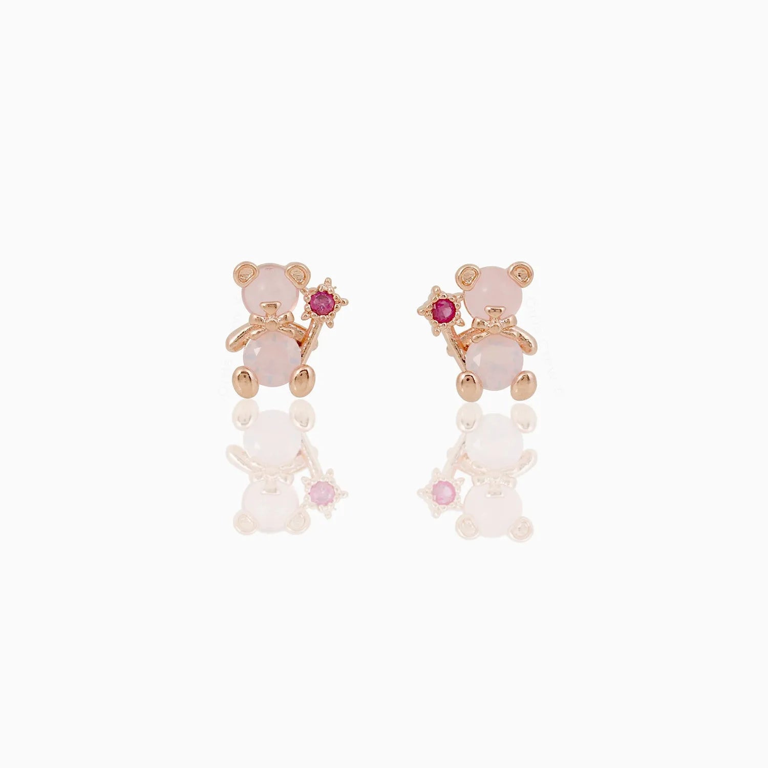✨Pendientes "Teddy Glow" 🧸 Ositos de Zirconia Rosa Dorados