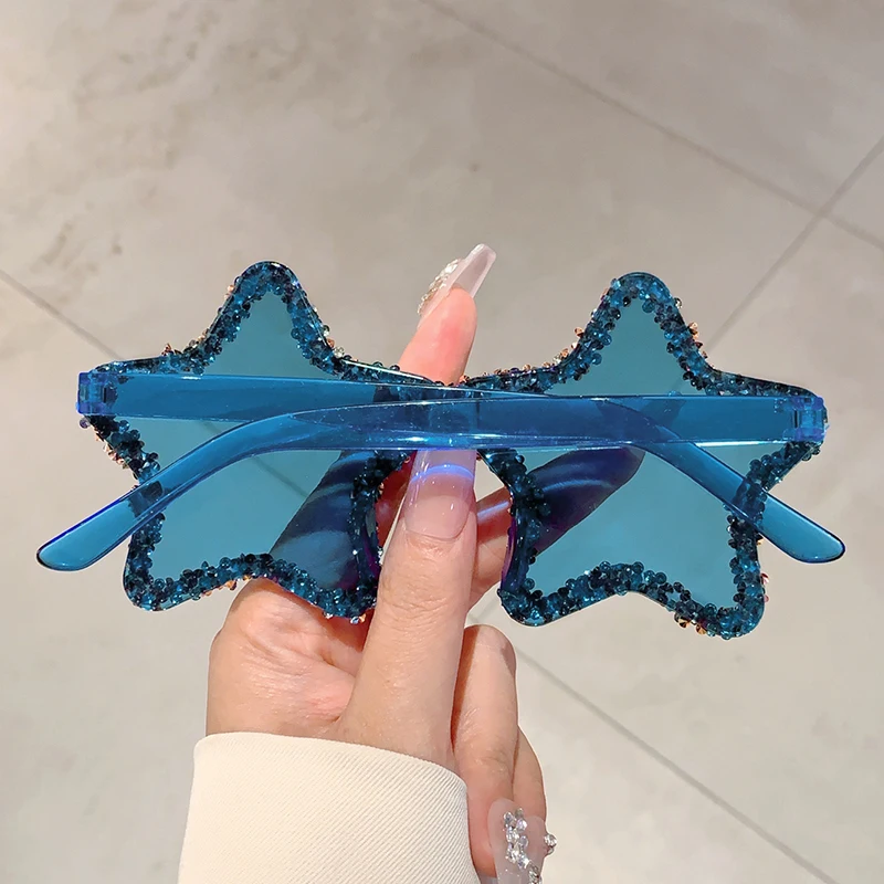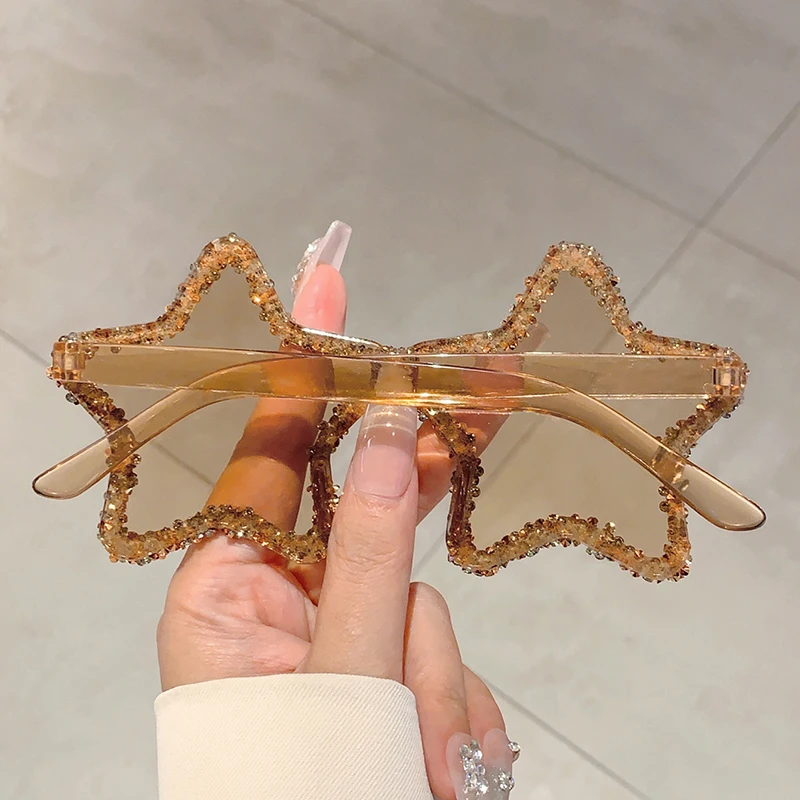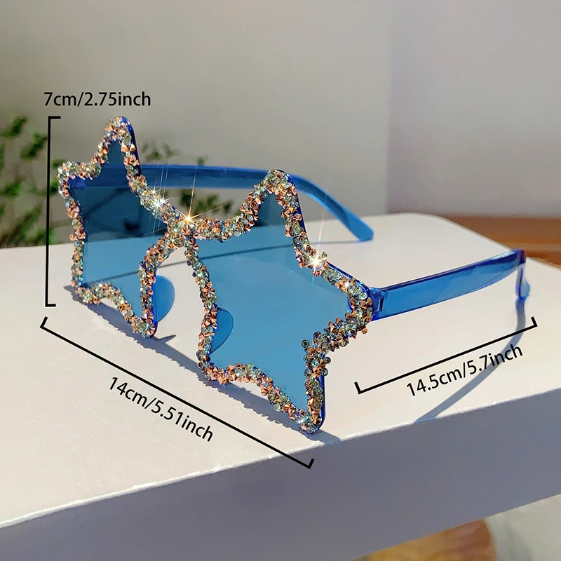 Diseño en forma de estrella, bordes con glitter y cristales brillantes. Estas gafas rosas son una fantasía total para festivales, fiestas en la playa o una sesión de fotos mágica. Ilumina con tu estilo.