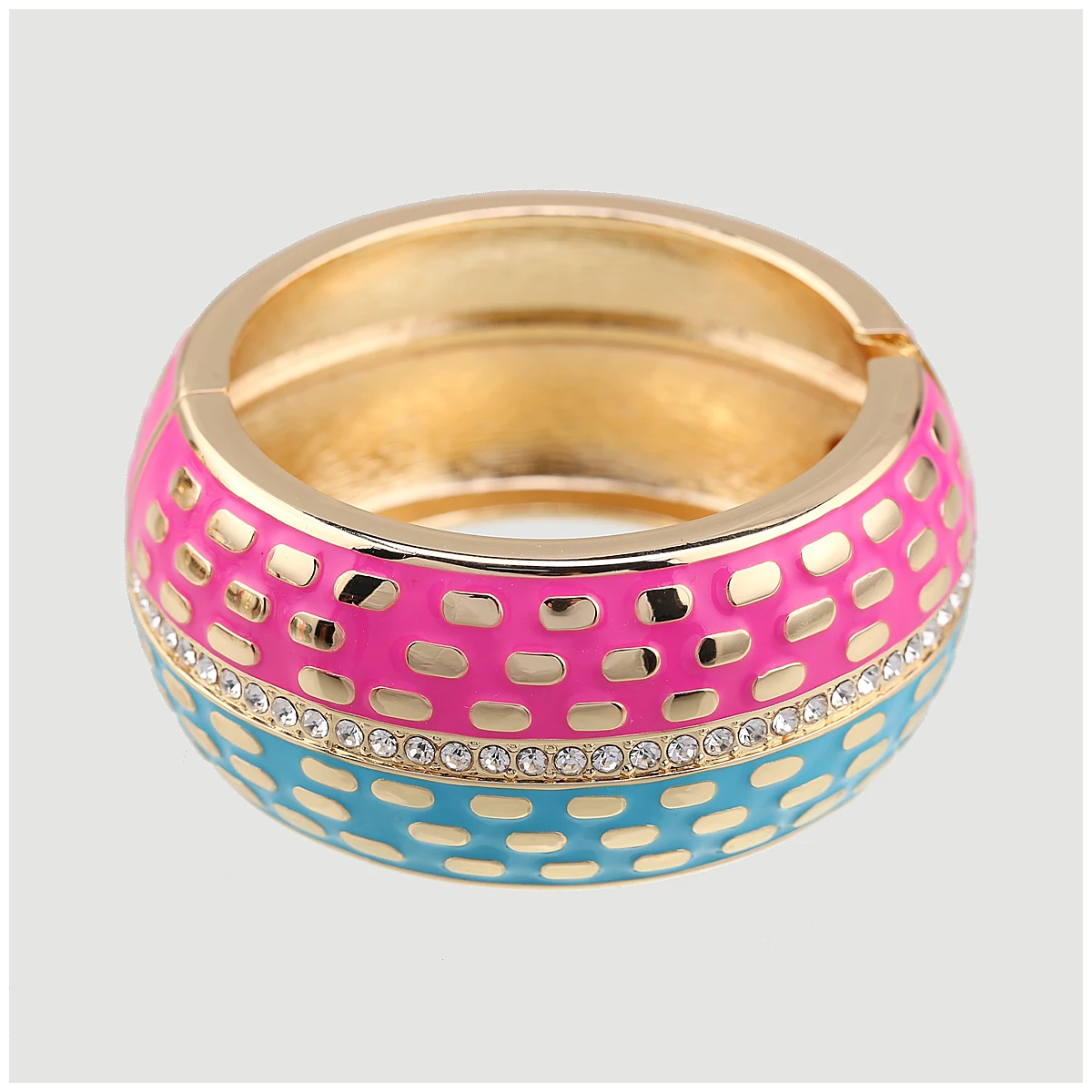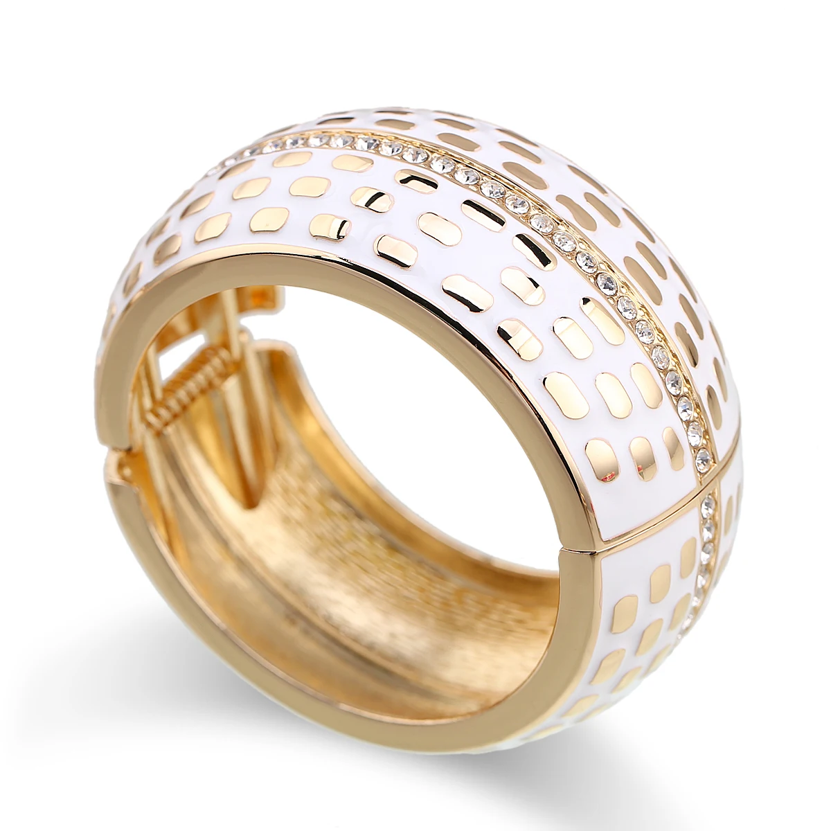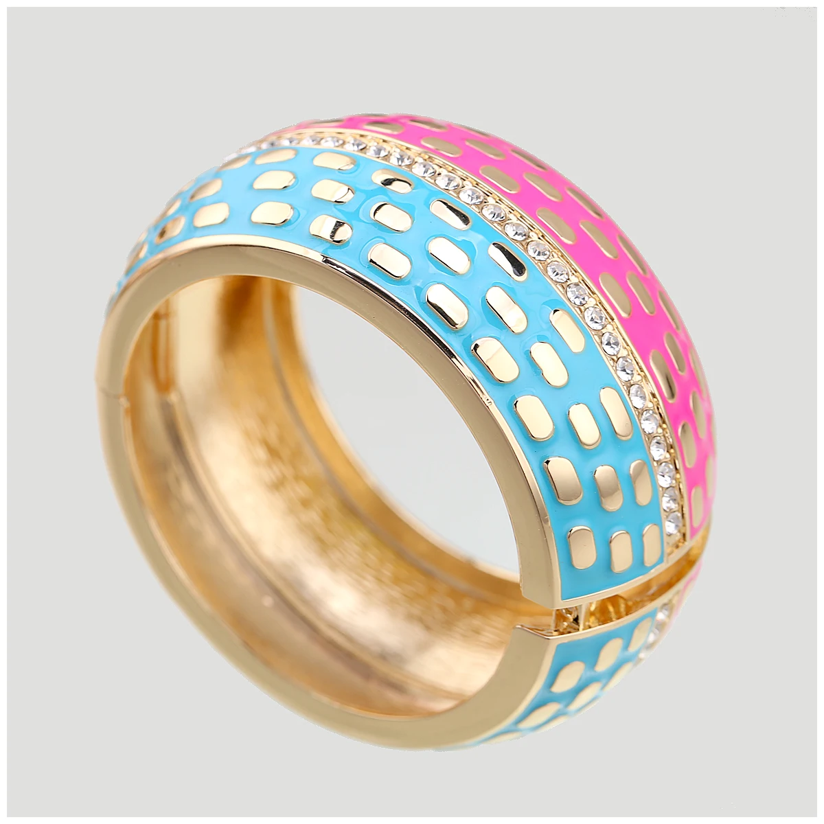 Este brazalete tipo cuff con esmalte brillante y cristales incrustados es puro statement. Disponible en 4 colores, su acabado dorado eleva cualquier outfit a nivel diosa del festival. Perfecto para combinar, apilar o llevar solito como amuleto de poder. Glam, rebelde y con vibra arcoíris.
