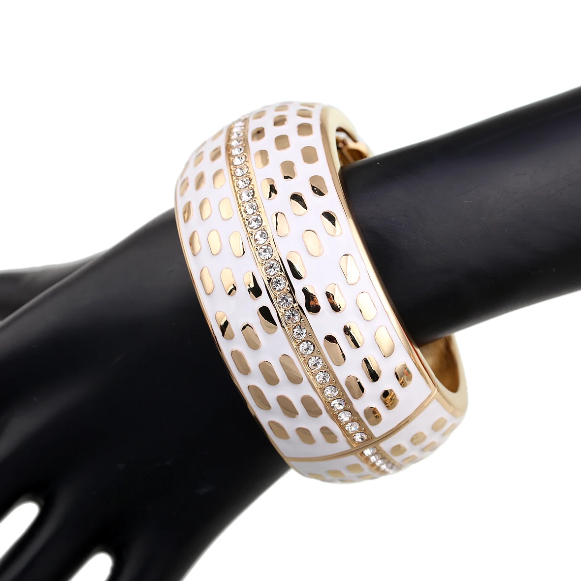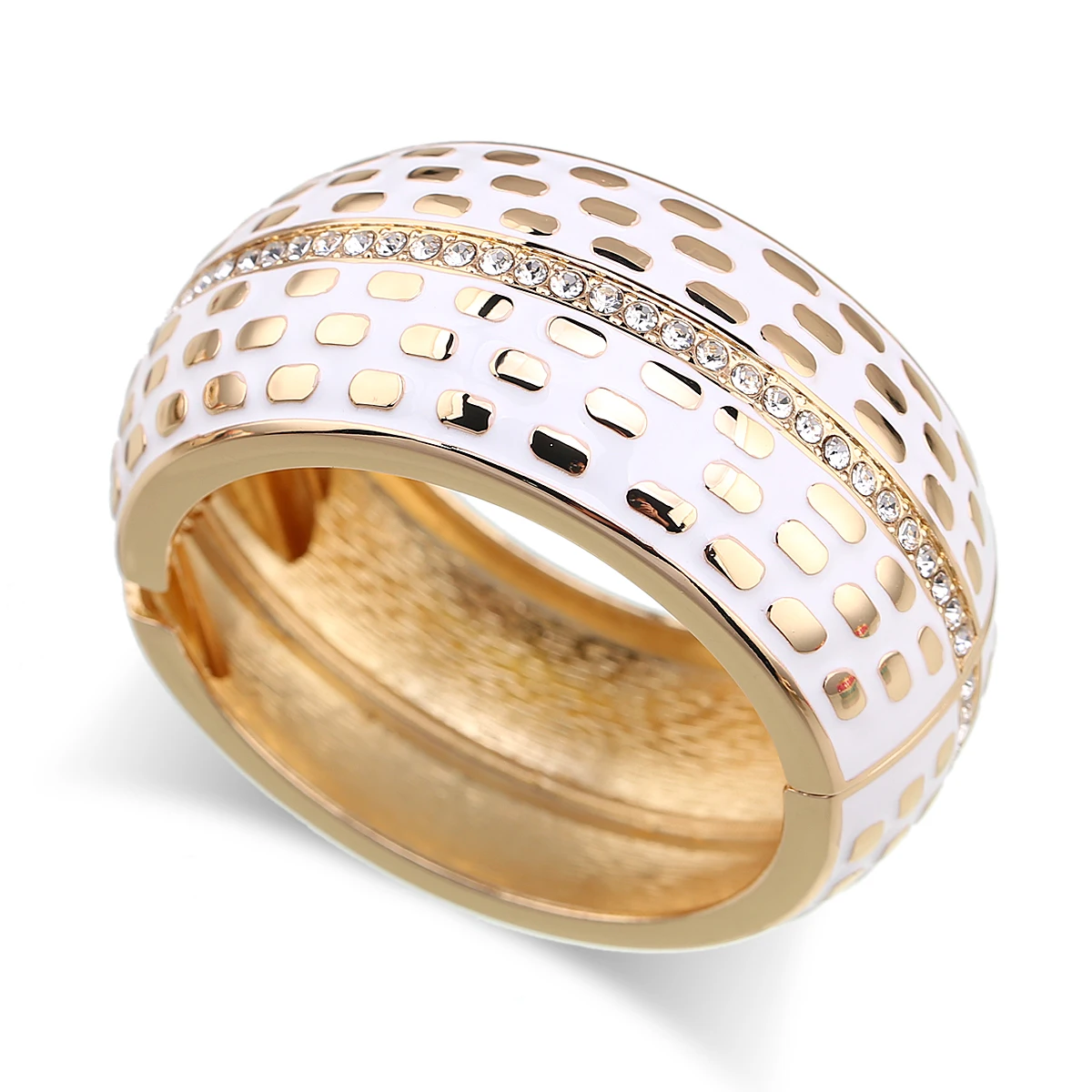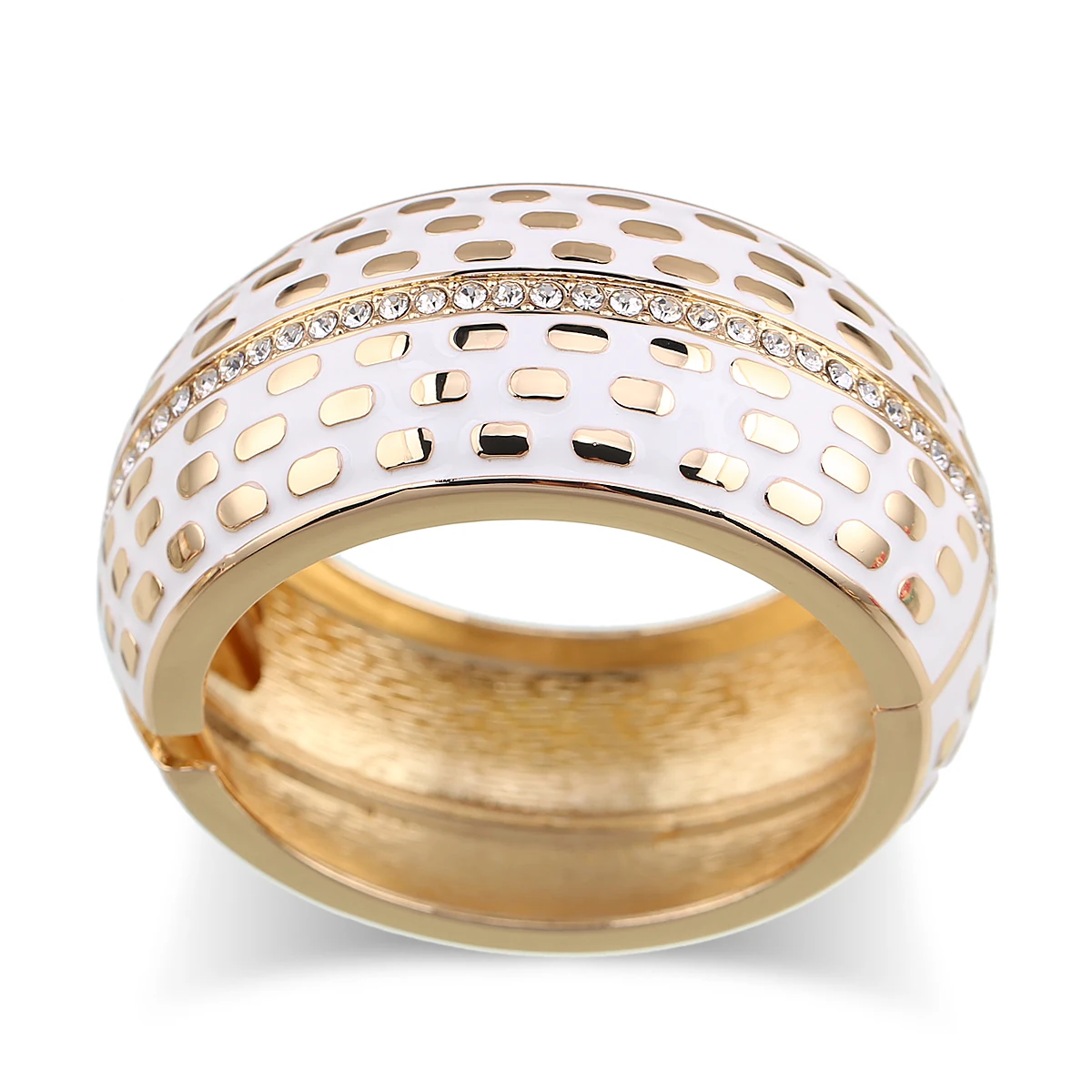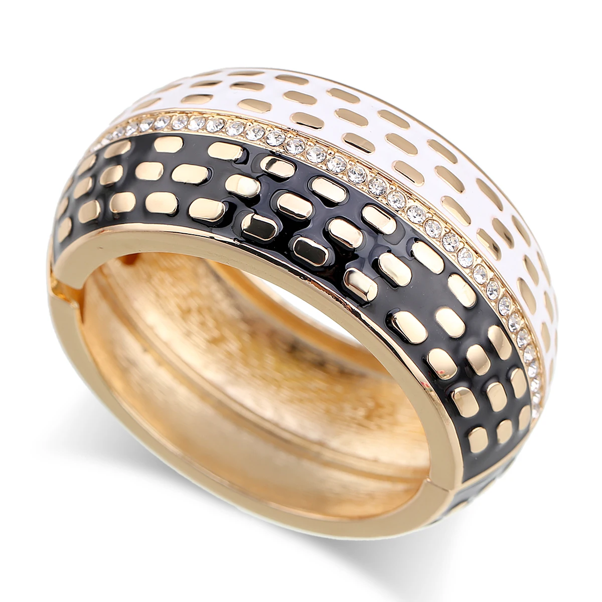 Este brazalete tipo cuff con esmalte brillante y cristales incrustados es puro statement. Disponible en 4 colores, su acabado dorado eleva cualquier outfit a nivel diosa del festival. Perfecto para combinar, apilar o llevar solito como amuleto de poder. Glam, rebelde y con vibra arcoíris.