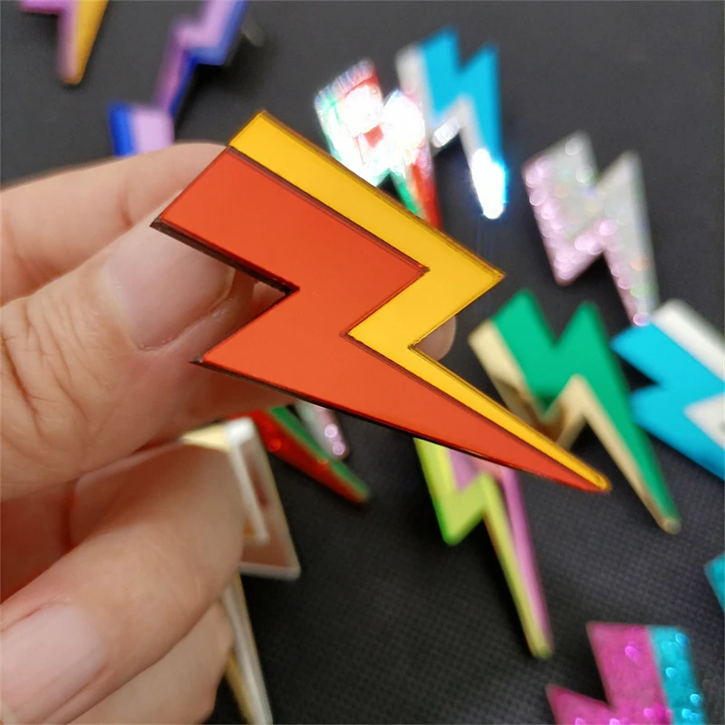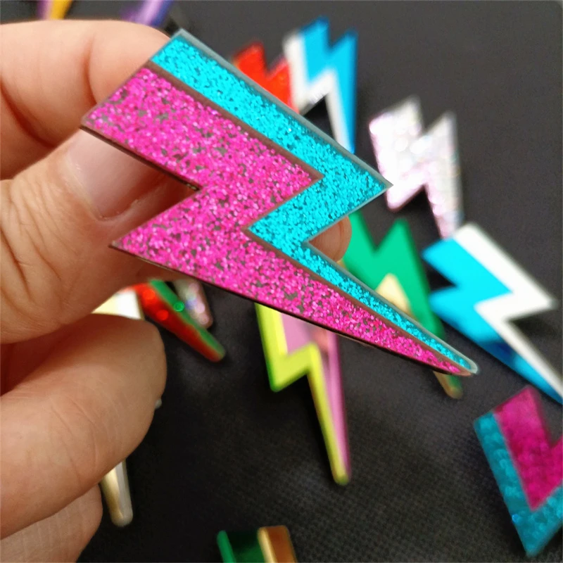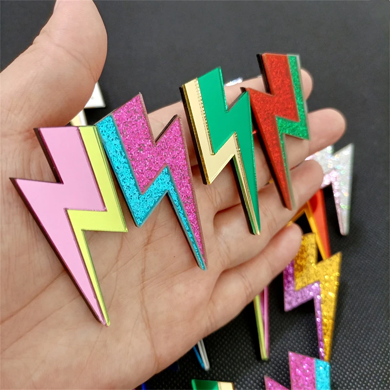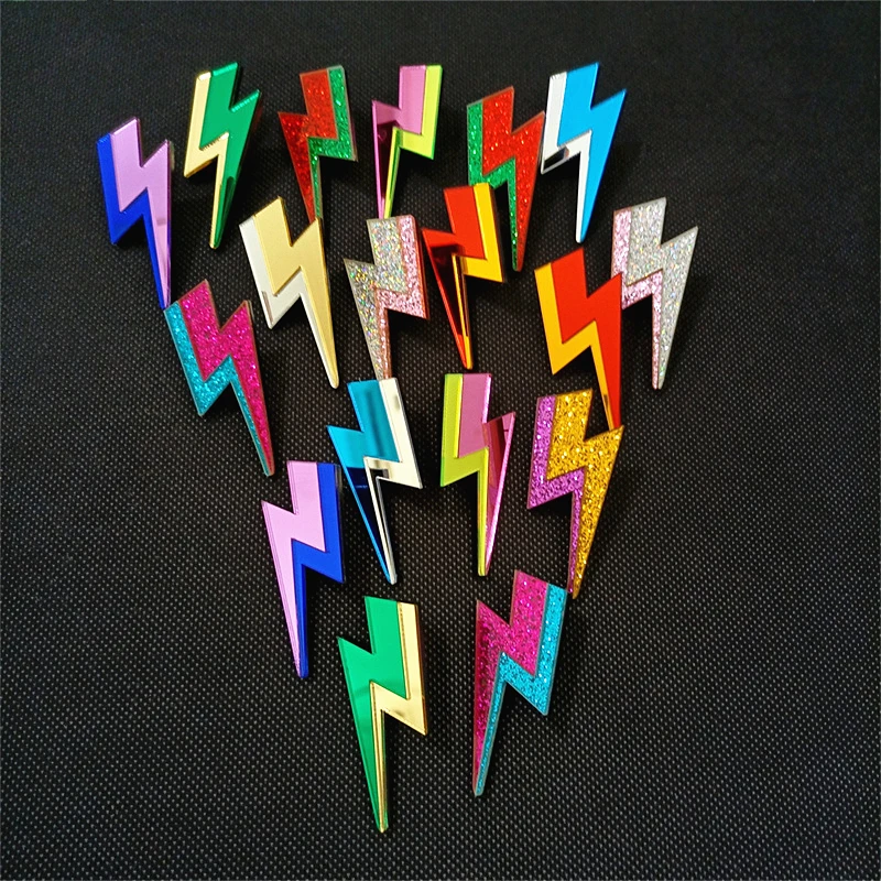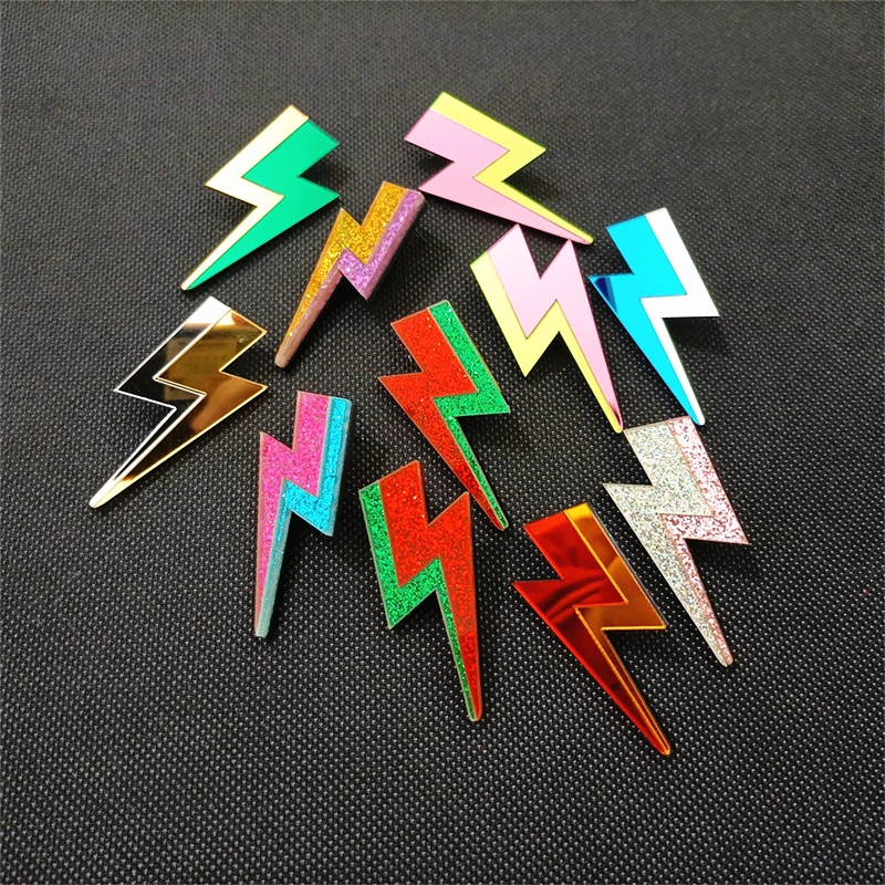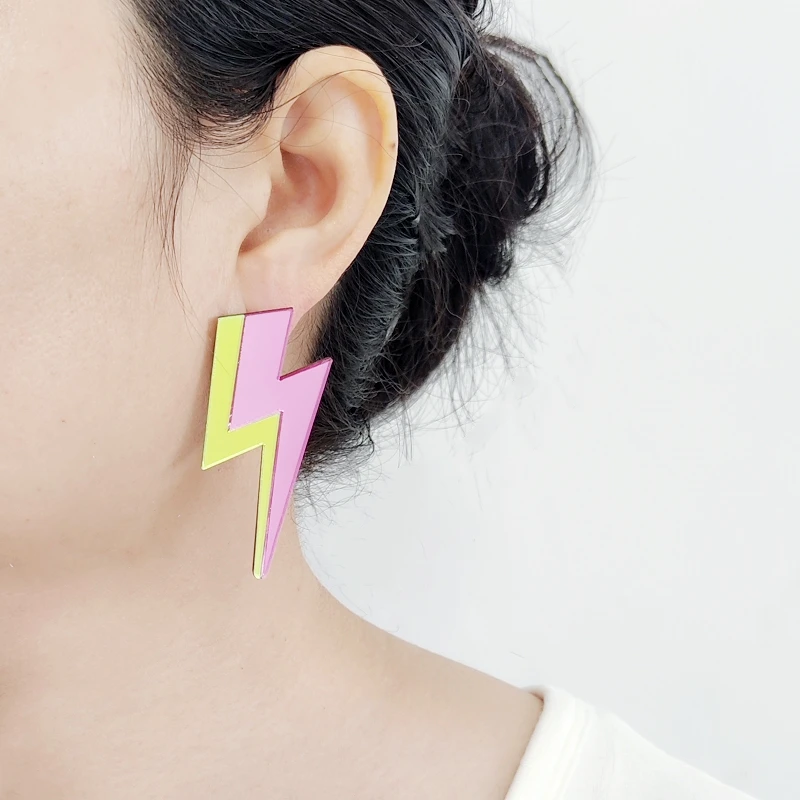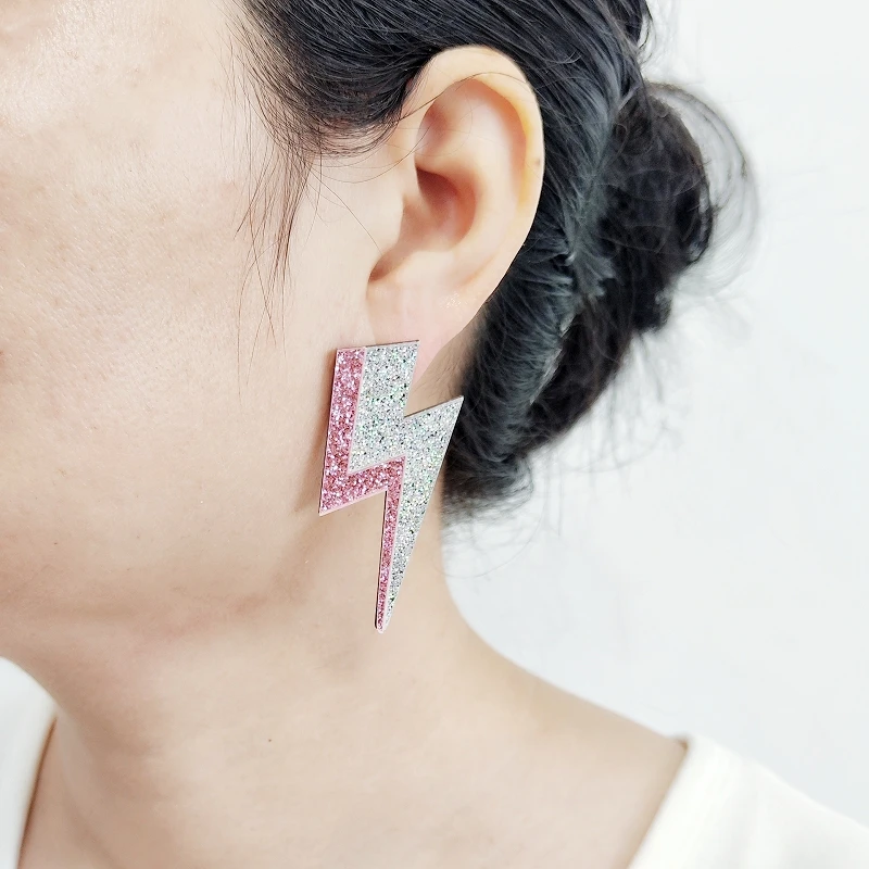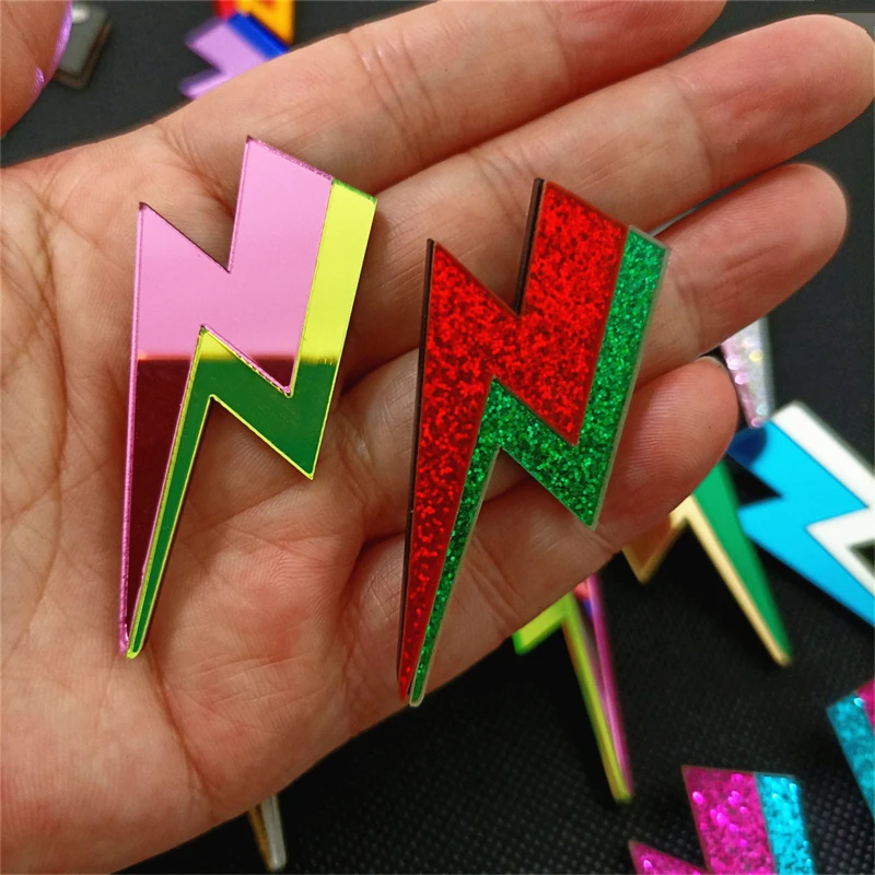 Descarga tu esencia con estos pendientes rayo llenos de chispa, color y actitud. Inspirados en el poder de lo inesperado, en la energía que vibra fuerte y no se explica, estos pendientes en acrílico espejo o con glitter son un himno a lo rebelde.
