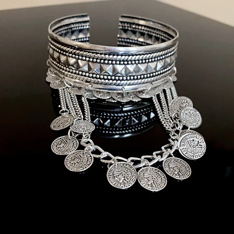 ⚡ Estilo boho-gótico con monedas colgantes. Ideal para festivales, raves o para añadir ese aire tribal y libre a tu look.