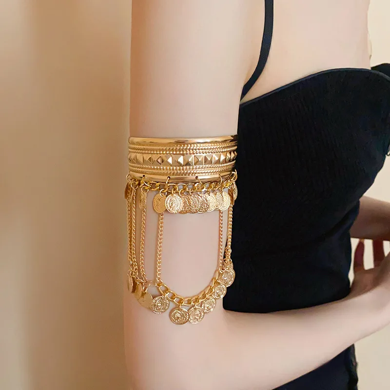 🌙 Mystic Coin ✨ Brazalete Abierto con Monedas