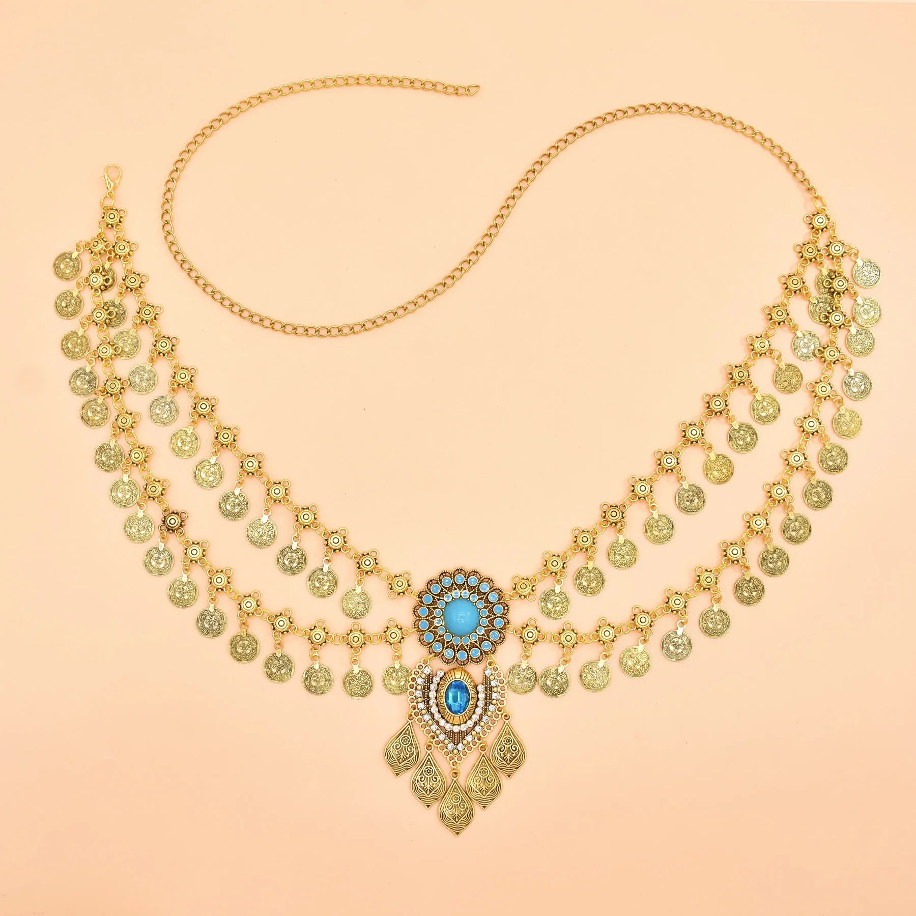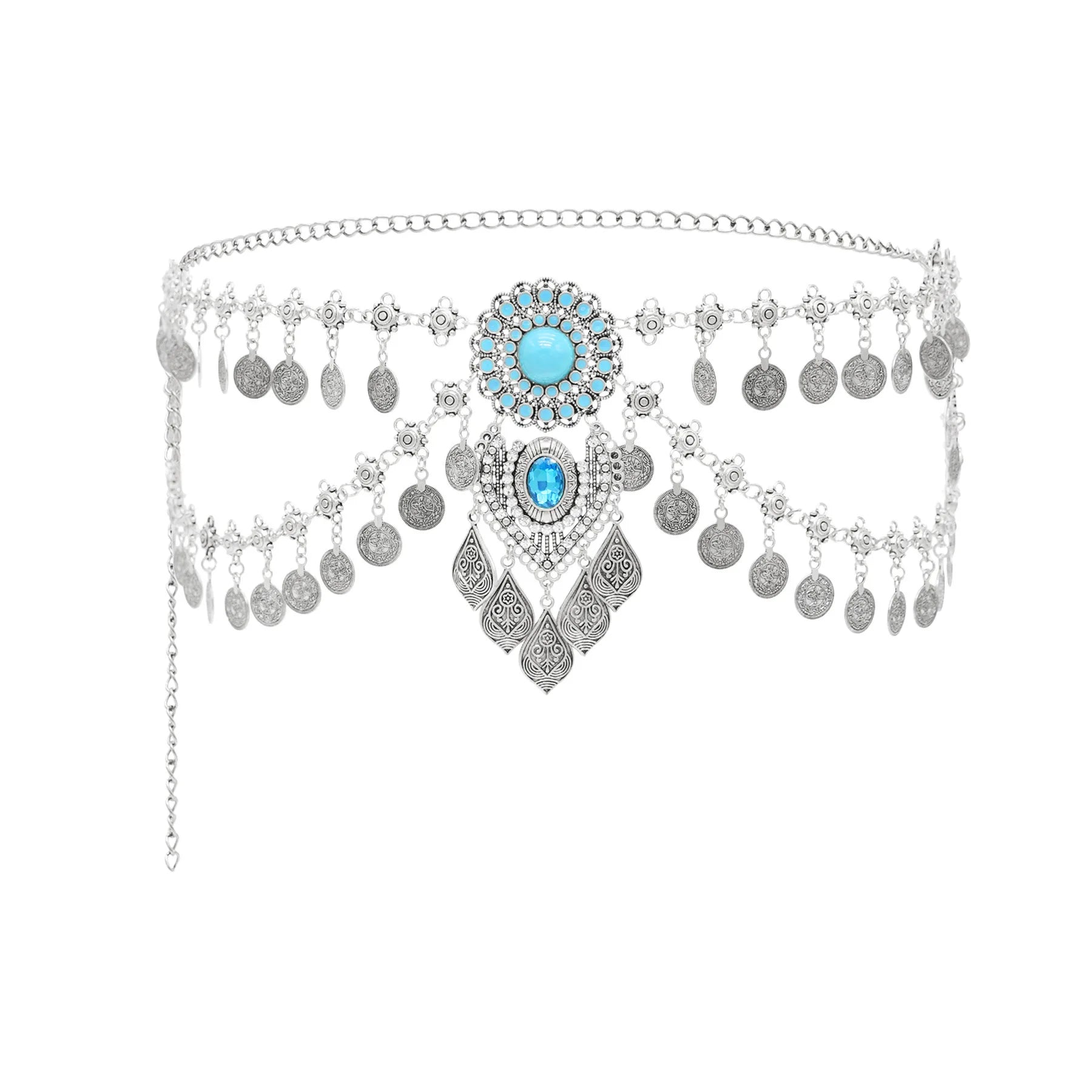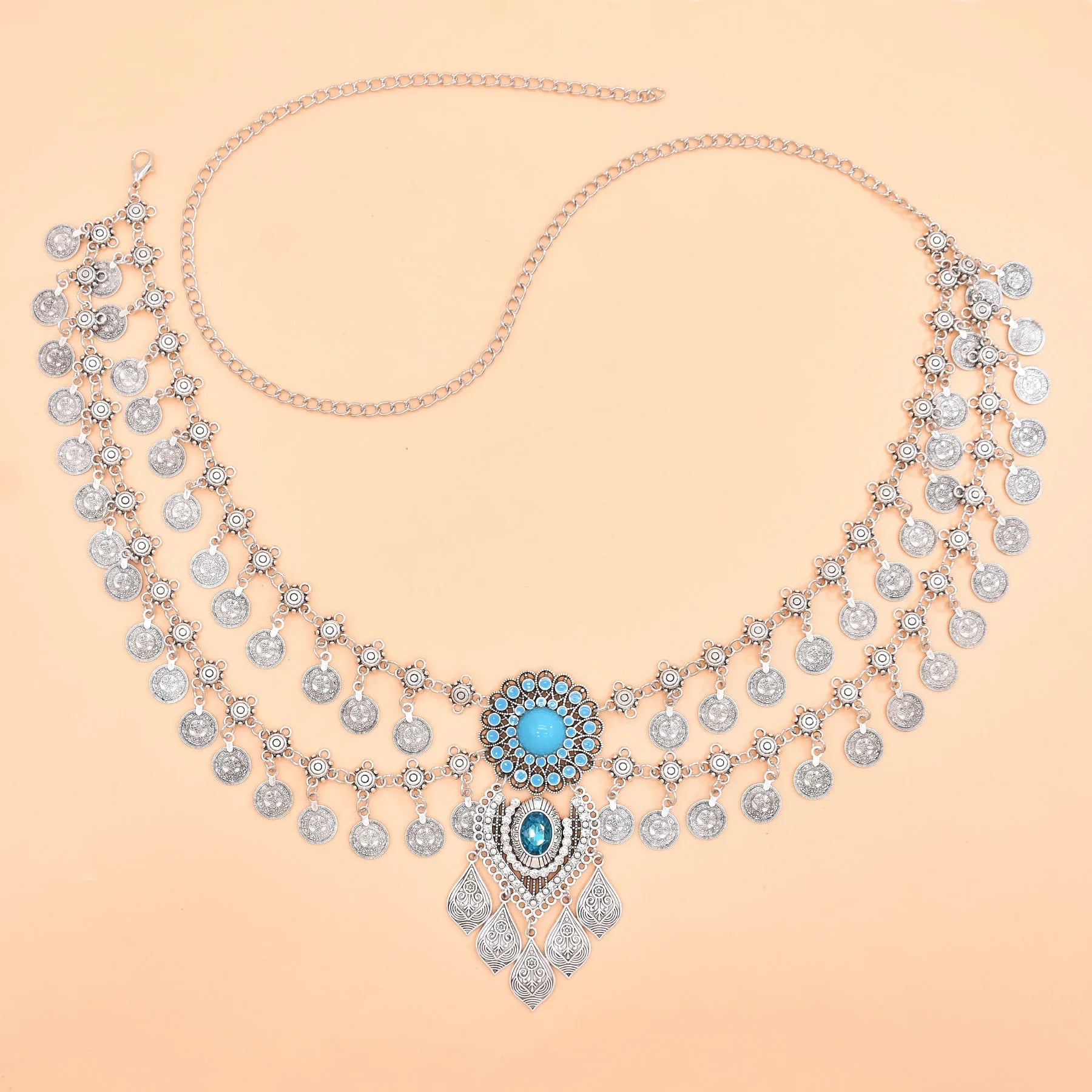 🌙✨ Boho Goddess Waist Chain – Cinturón Étnico de Monedas y Turquesa