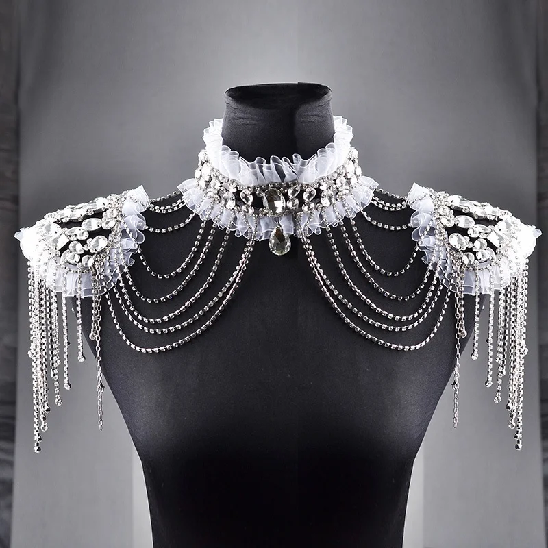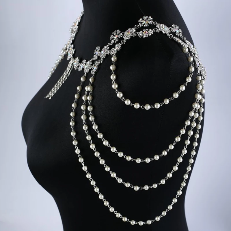 👰✨ Bridal Goddess Tassel Chain – Cadena con Flecos y Cristales para Hombros