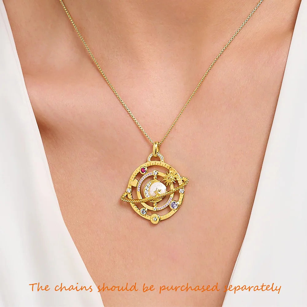 💫Descubre el poder de los astros con este Colgante Talismán Cósmico, un amuleto que vibra con la energía del universo. Su diseño tridimensional, rico en detalles, entrelaza anillos planetarios, una luna enigmática con circonitas que brillan como estrellas, y órbitas encantadas con piedras multicolor. Un sol, un corazón y un ojo protector completan este talismán, despertando tu intuición y recordándote que el universo está de tu lado.