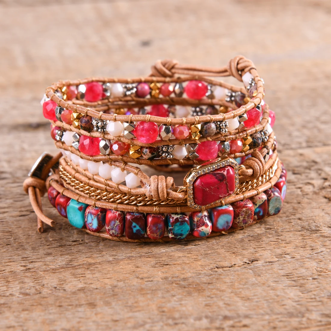 Una joya que conecta con tus raíces. Hecha con cuero, piedras jaspe y un corazón de turquesa que parece sacado de un templo azteca mágico. Boho, salvaje y protectora.