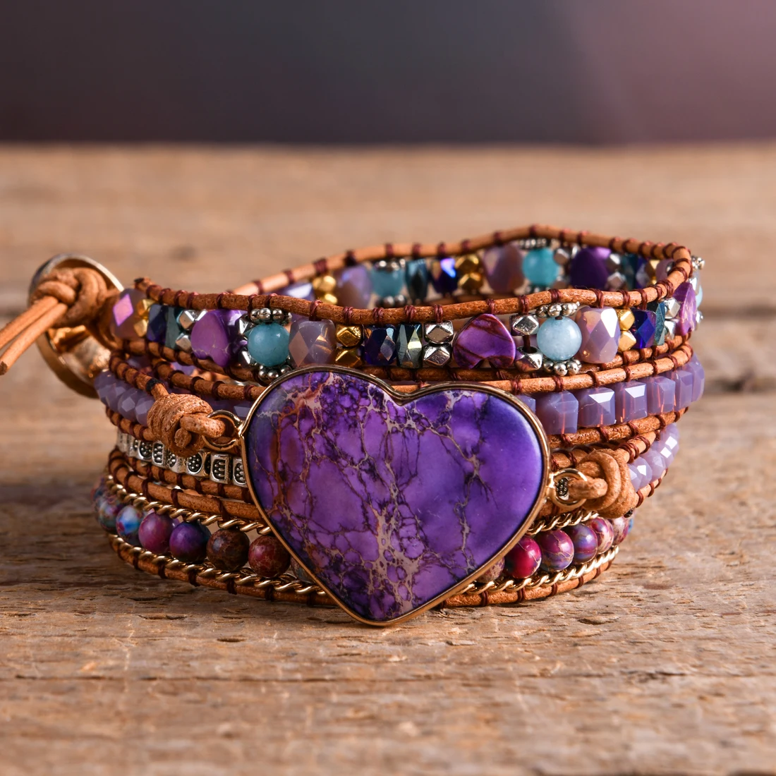 💛Heart Roots" — Pulsera de Cuero con Piedra natural