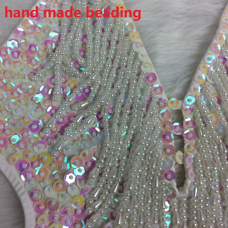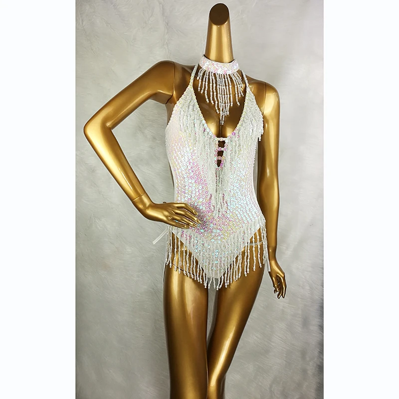 Siente la llamada del océano con nuestro Pearl Mermaid Body , un cuerpo de ensueño cubierto de lentejuelas iridiscentes y flecos perlados que capturan la luz como si salieras de una ola. Su escote profundo y cuello halter joya lo convierten en una pieza ultra glam para brillar como nunca.