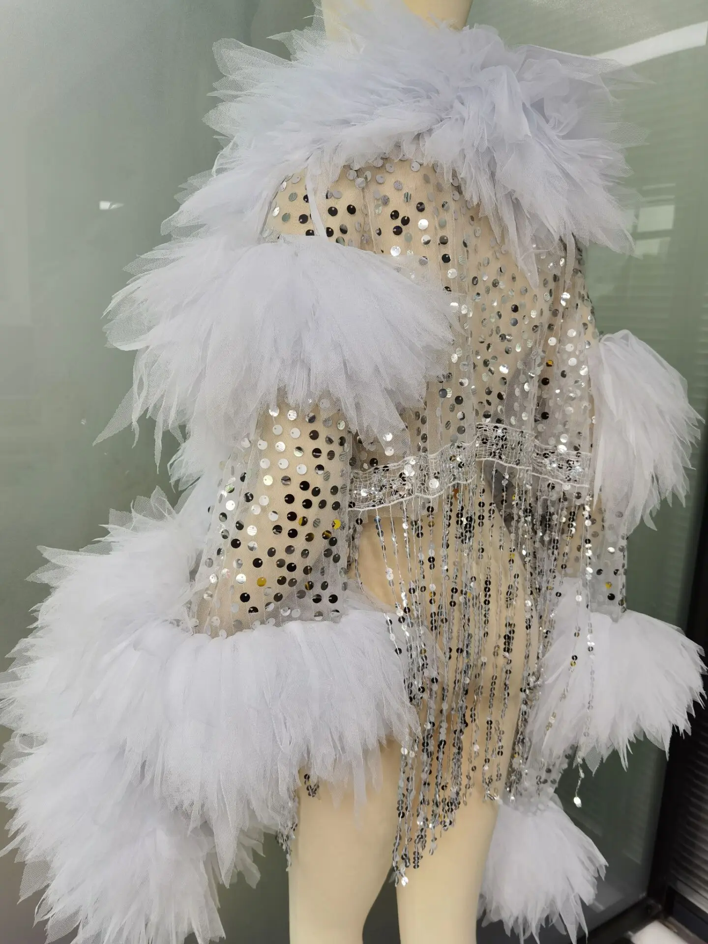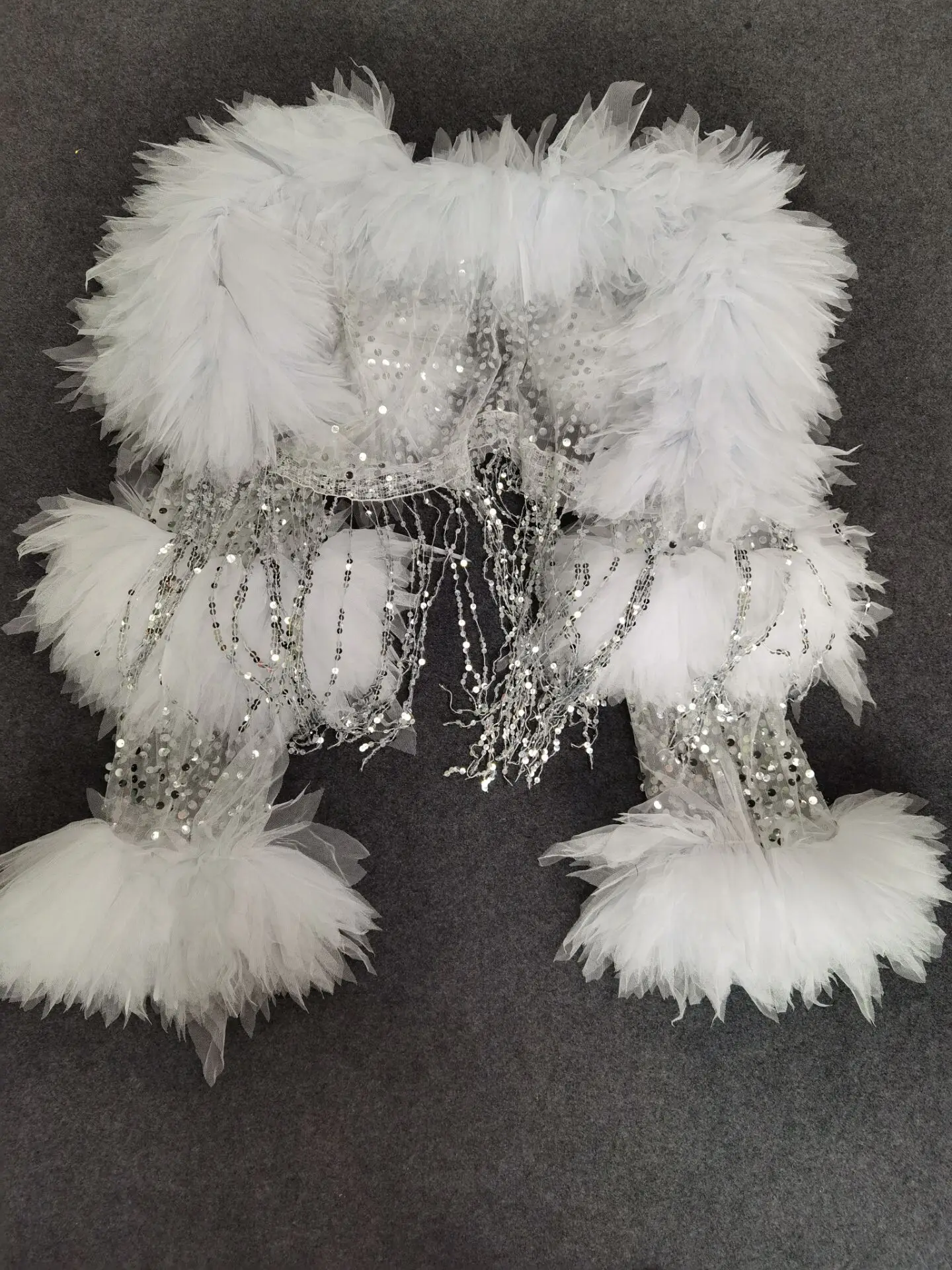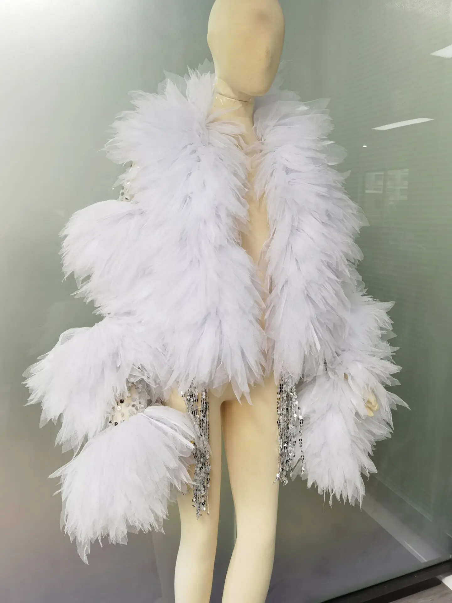 ❄️ White Diva Coat — Kimono de Plumas con Lentejuelas Plateadas👑