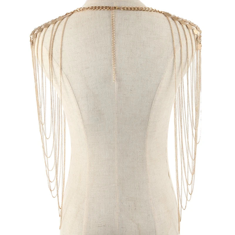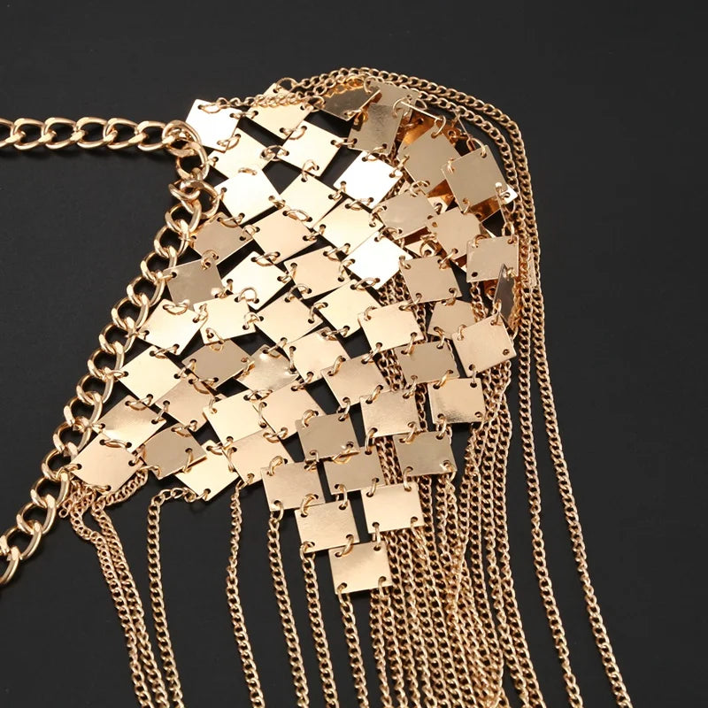 ⚔️✨ Punk Goddess Harness – Collar Cuerpo & Hombros con Flecos Metálicos