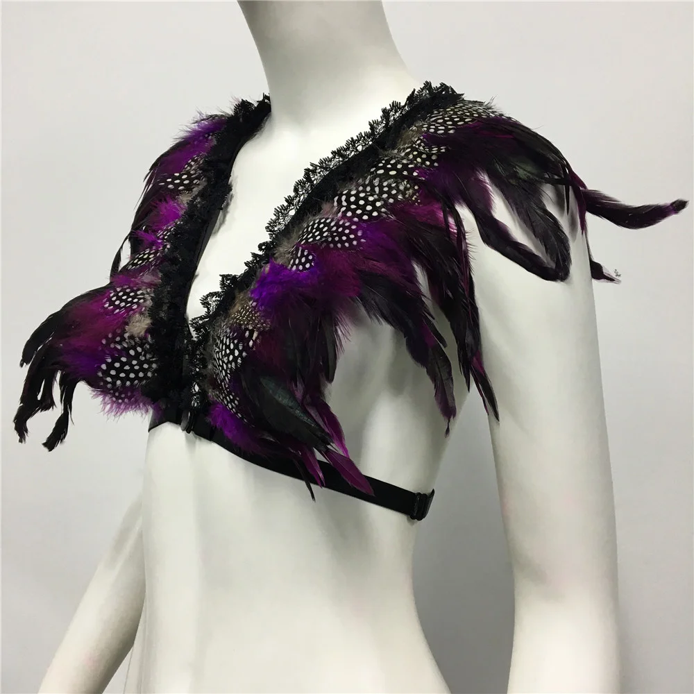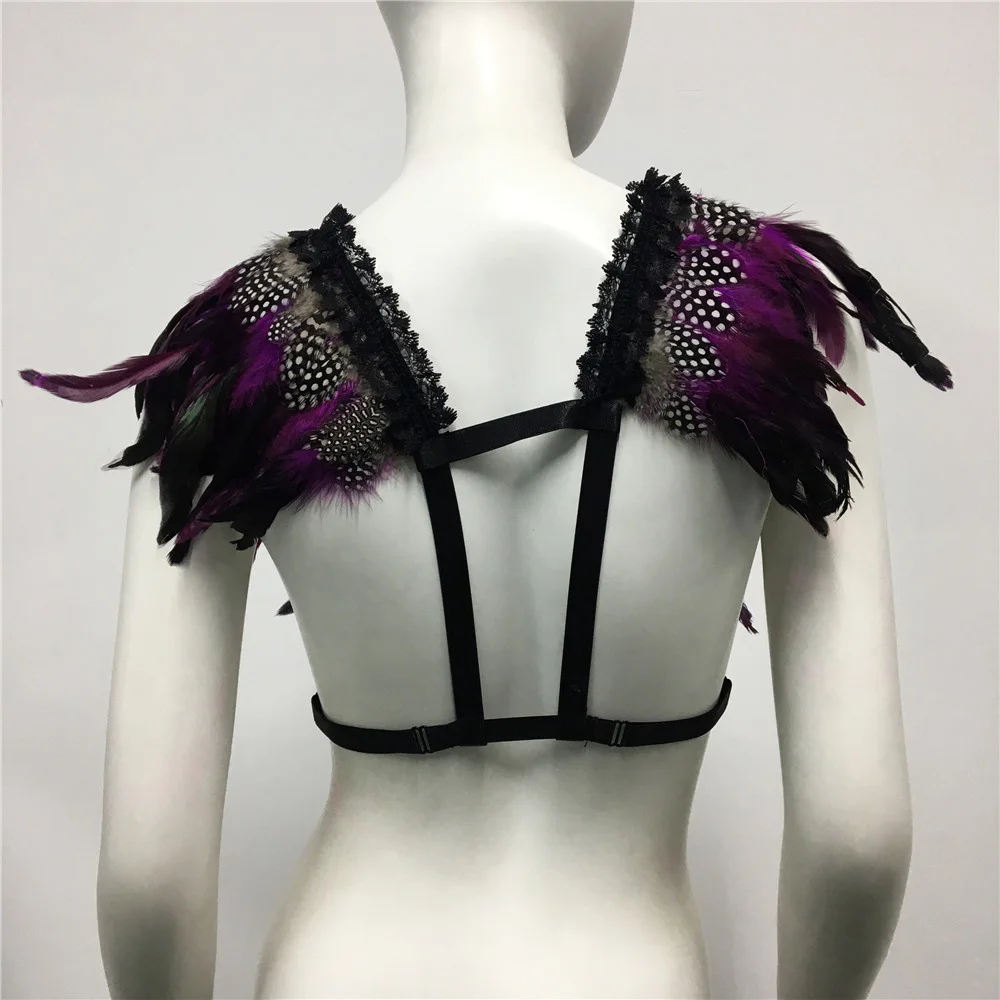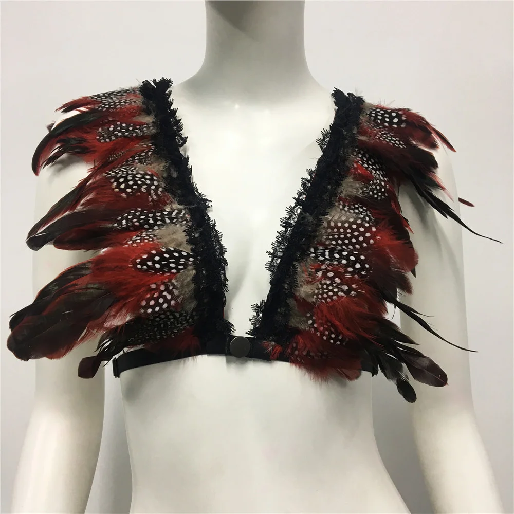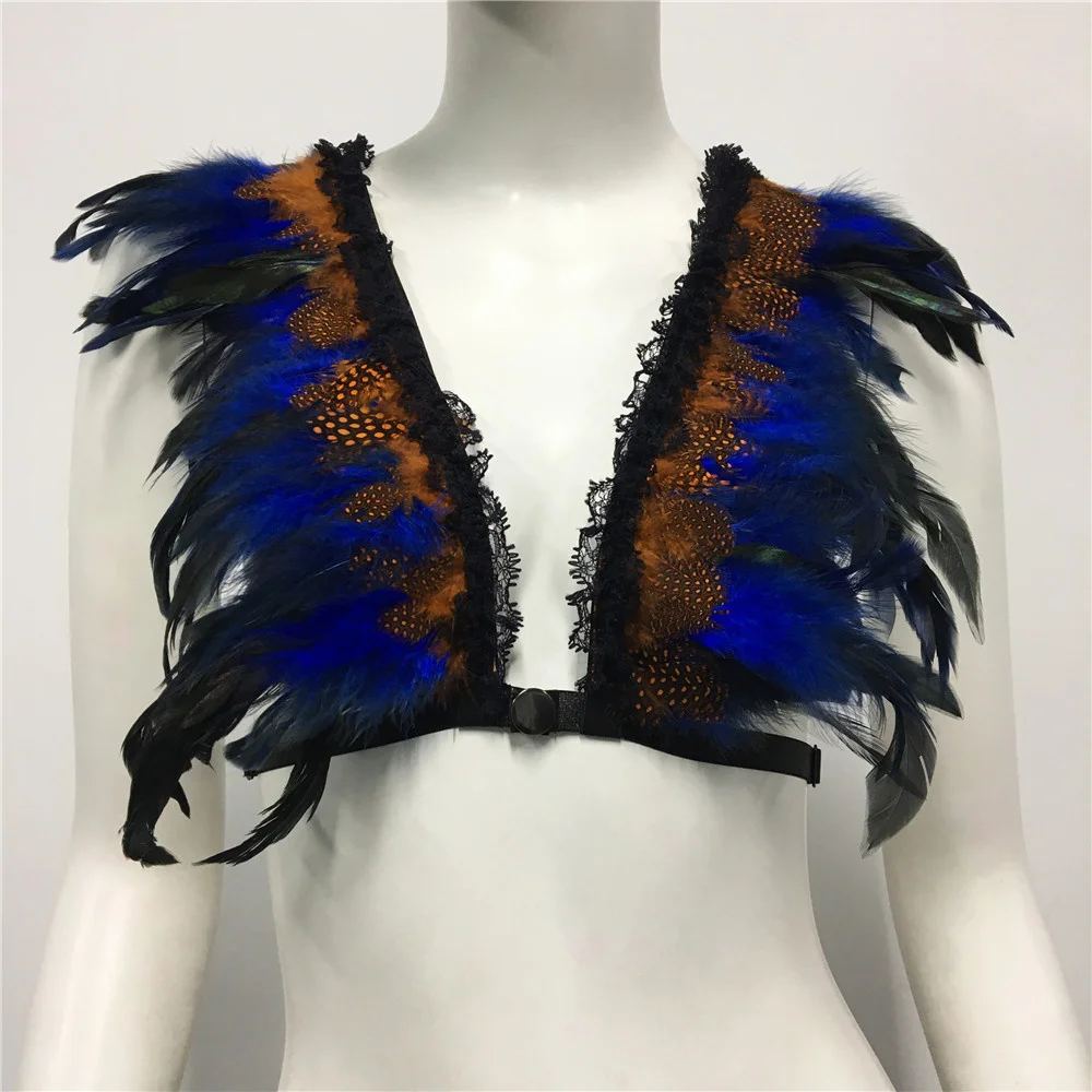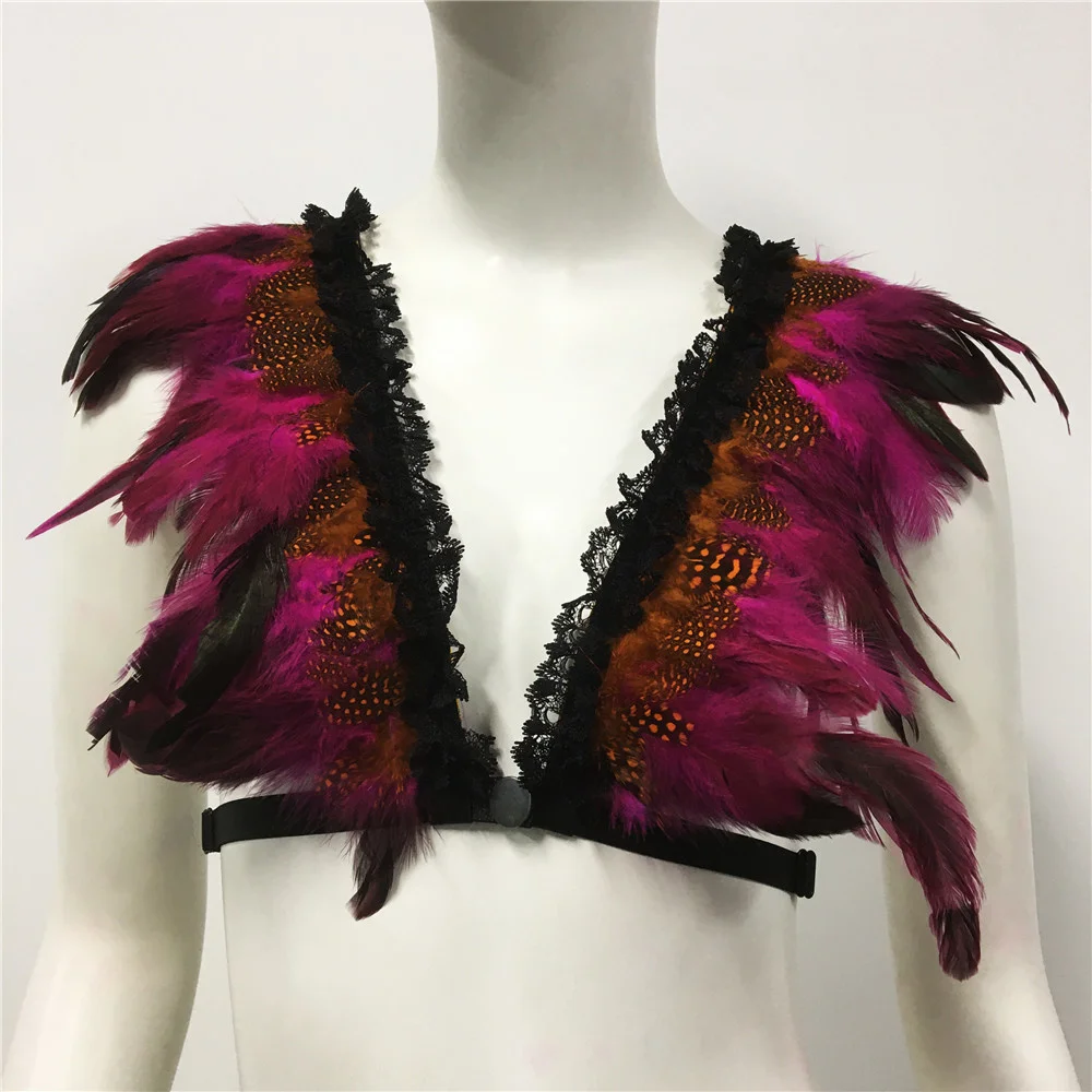 Un top de inspiración Burning Man con plumas en distintos tonos y arnés incluido. Para las que quieren un look salvaje, bohemio y único. Perfecto para festivales y noches al aire libre.