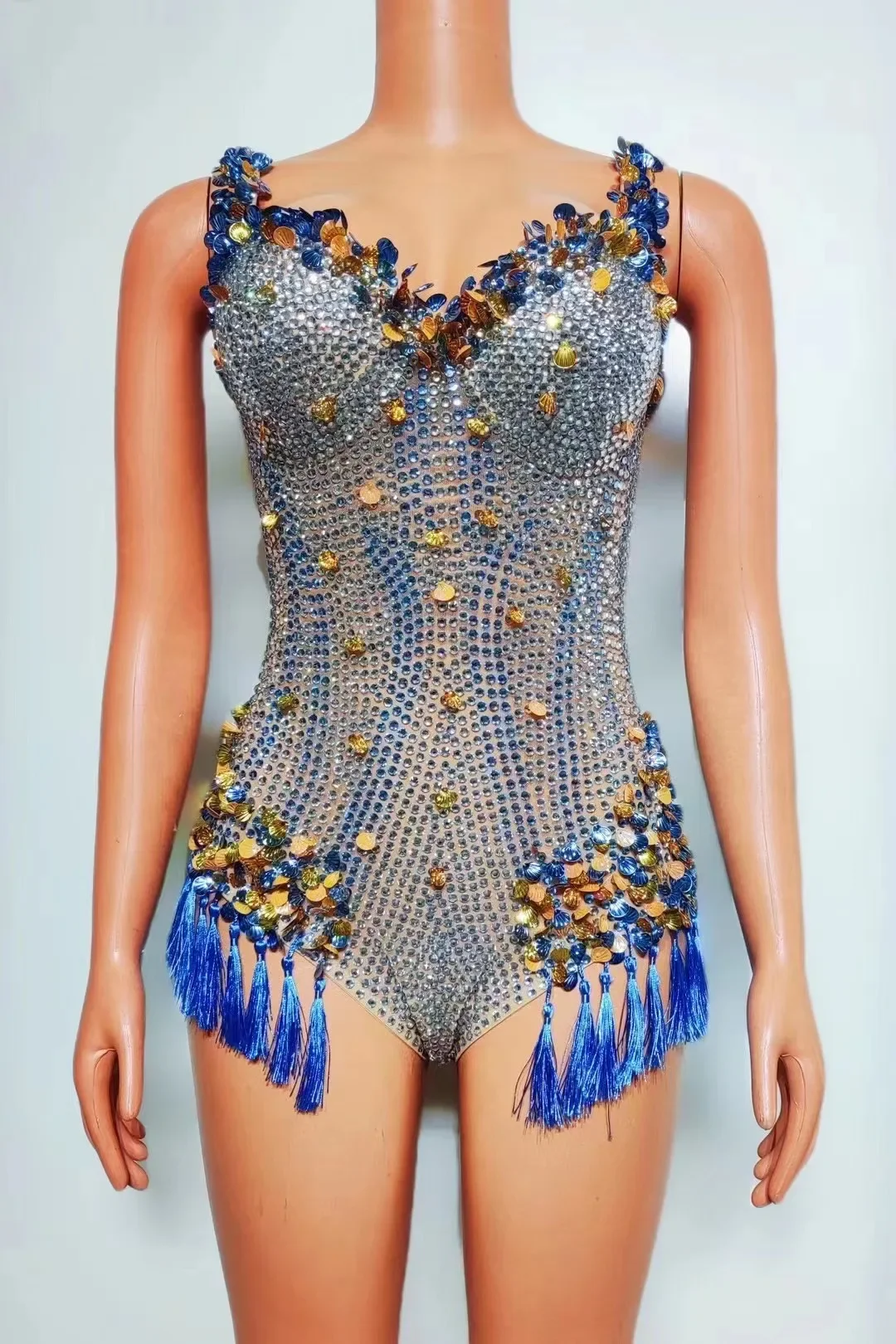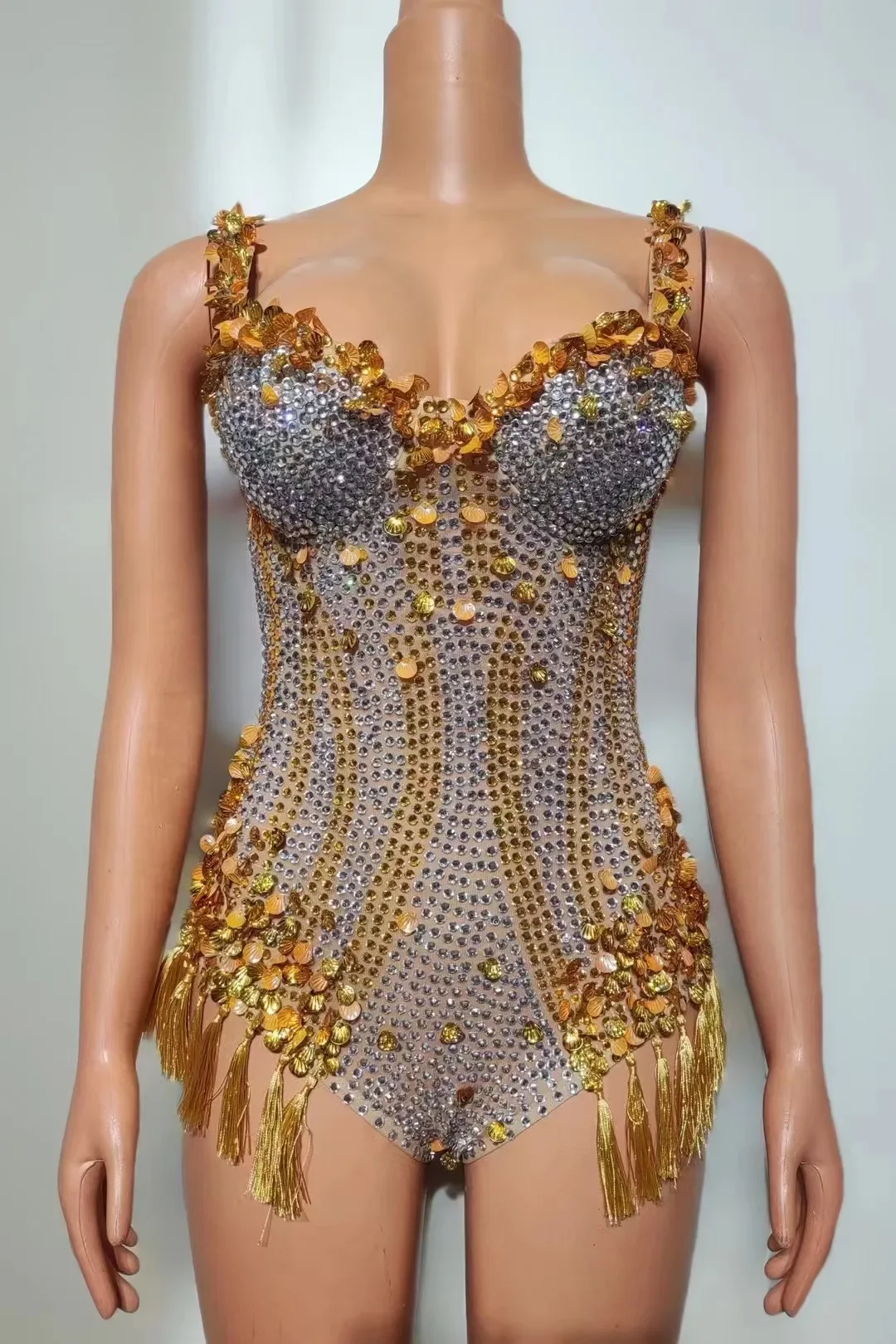 El Crystal Mirage Body es un body de fantasía de alto impacto, con estructura corsetera, miles de strass multicolor y borlas fucsias para ese toque salvaje y atrevido. Ideal para raves, festivales y rodajes que piden protagonismo total.