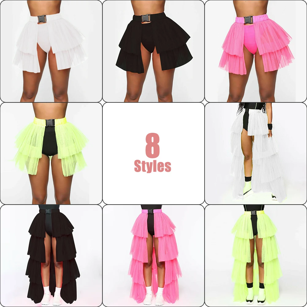 ⚡ Falda Neon Queen – Tul Transparente & Buckles 🌈 2 largos, 4 colores