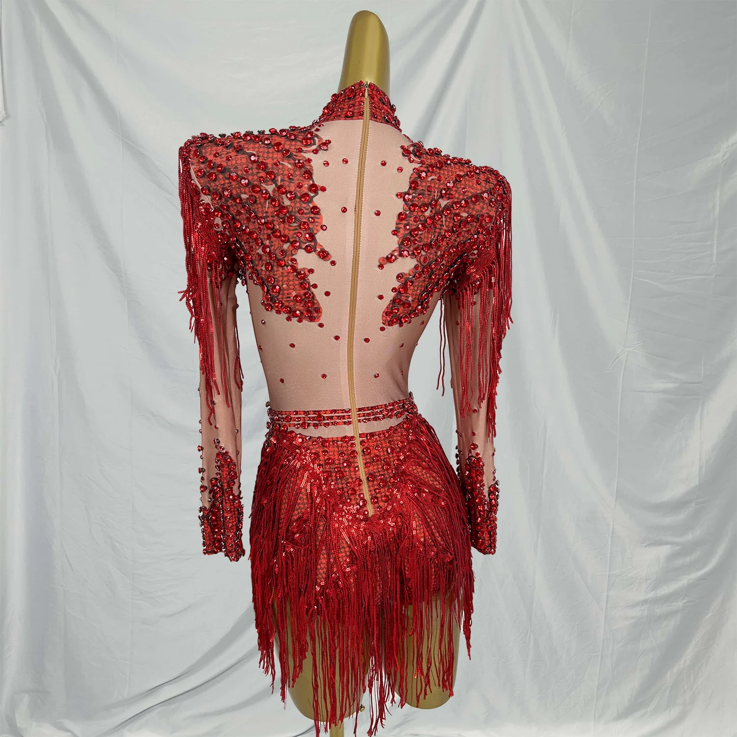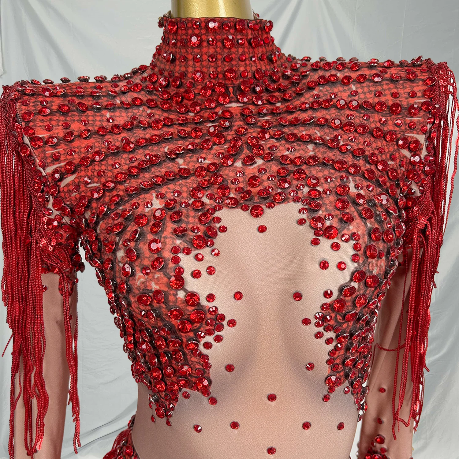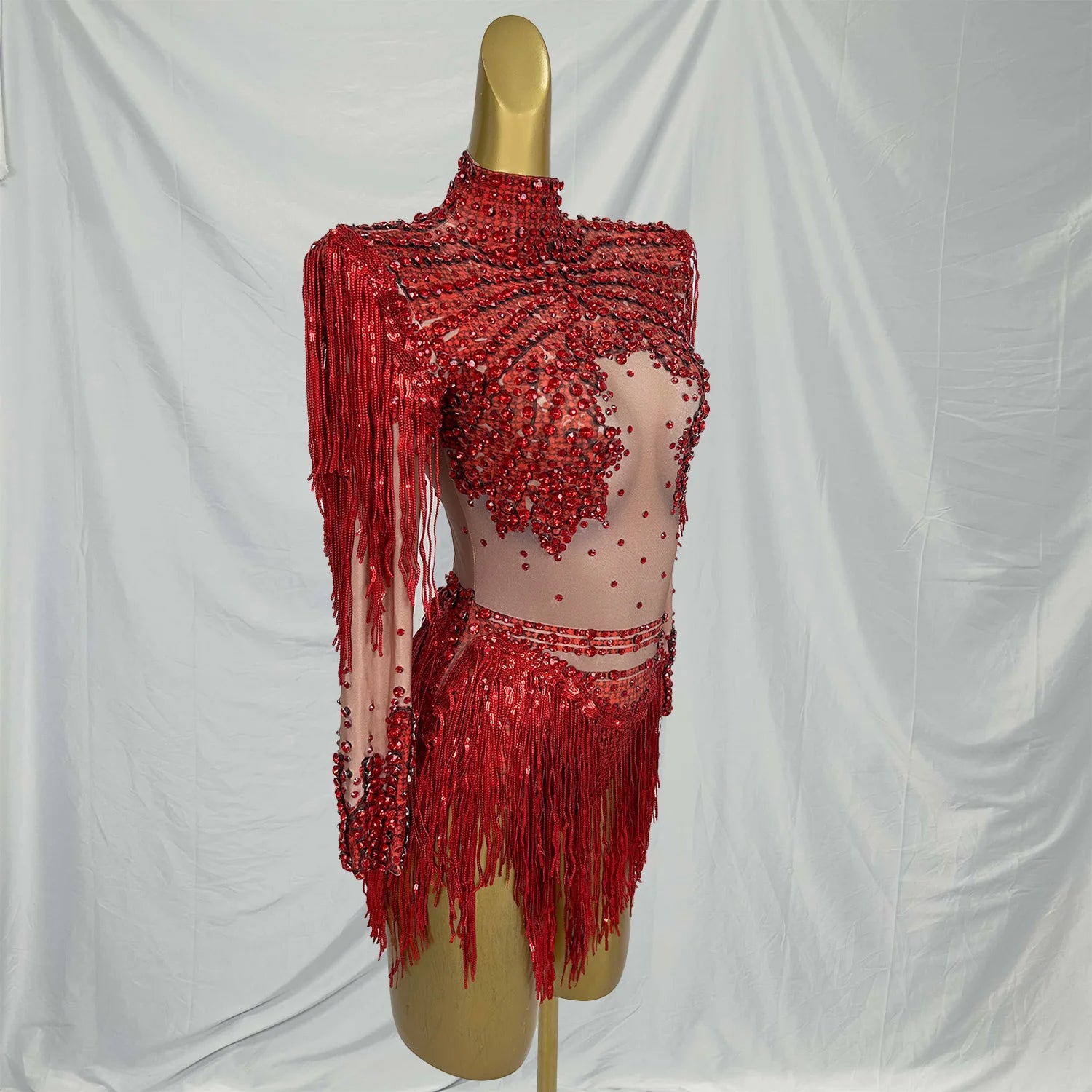 🔴 Red Heat – Pasión salvaje 💃 Desata tu fuego interior con este body rojo pasión lleno de flecos y brillo. Ideal para cuando quieres que todas las miradas te sigan.